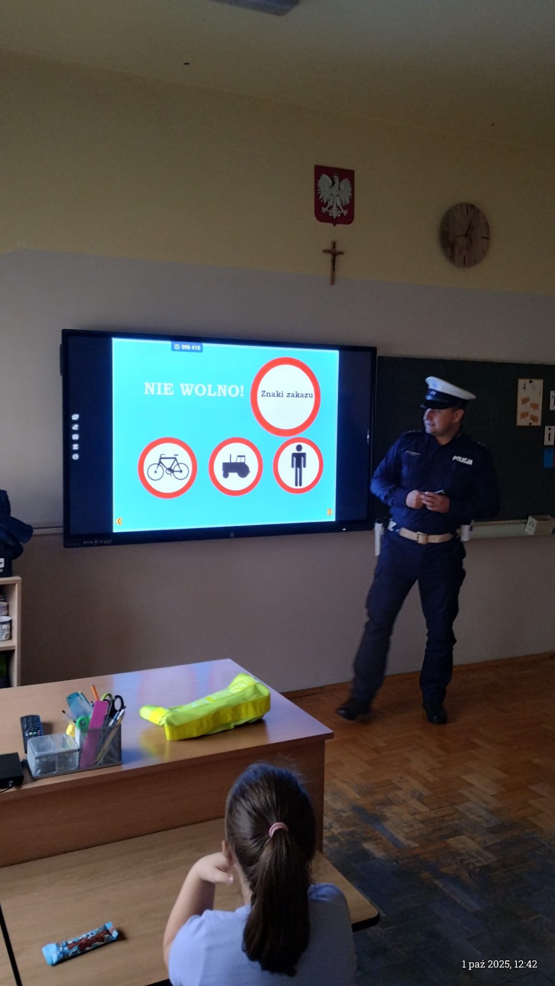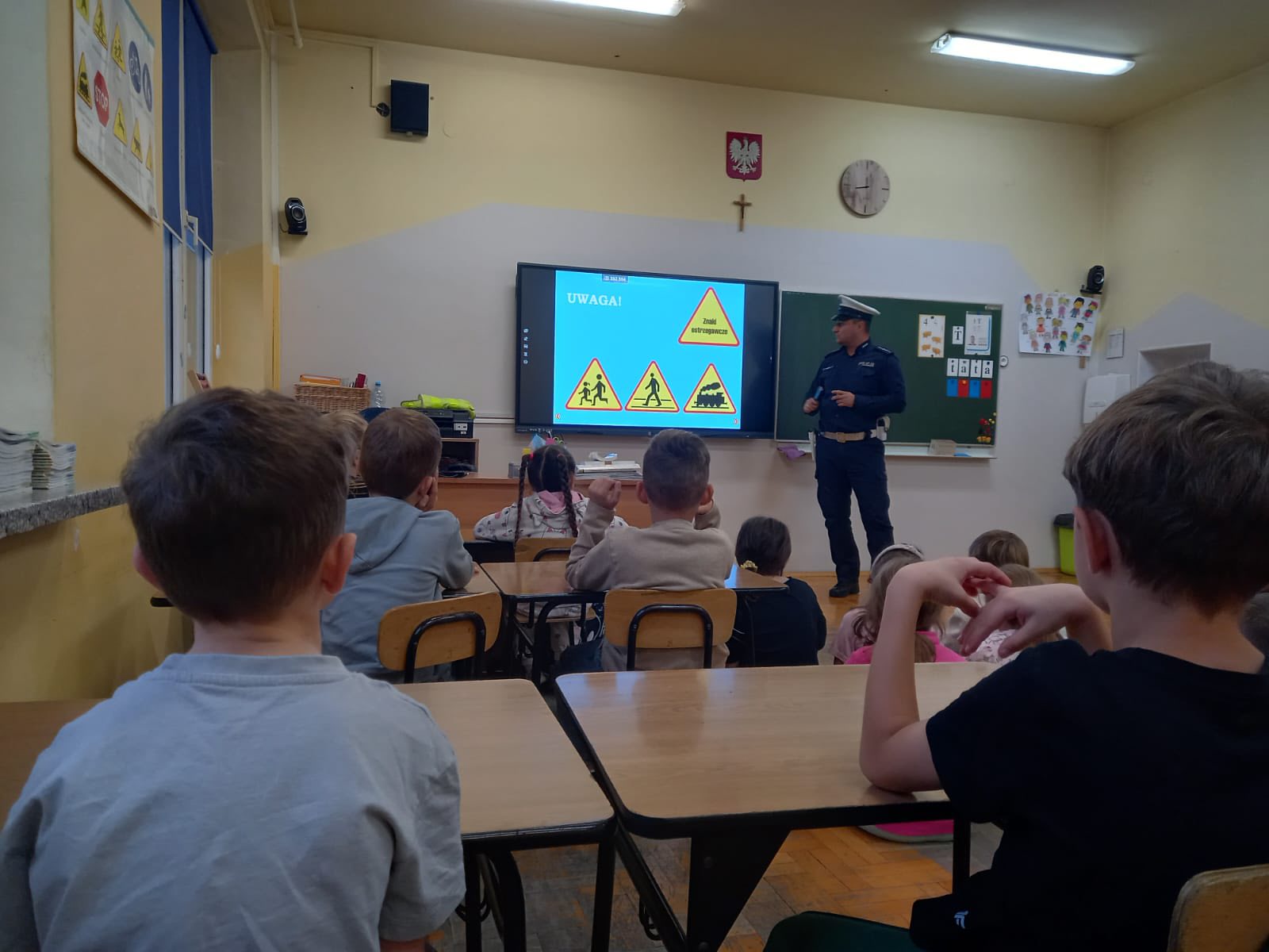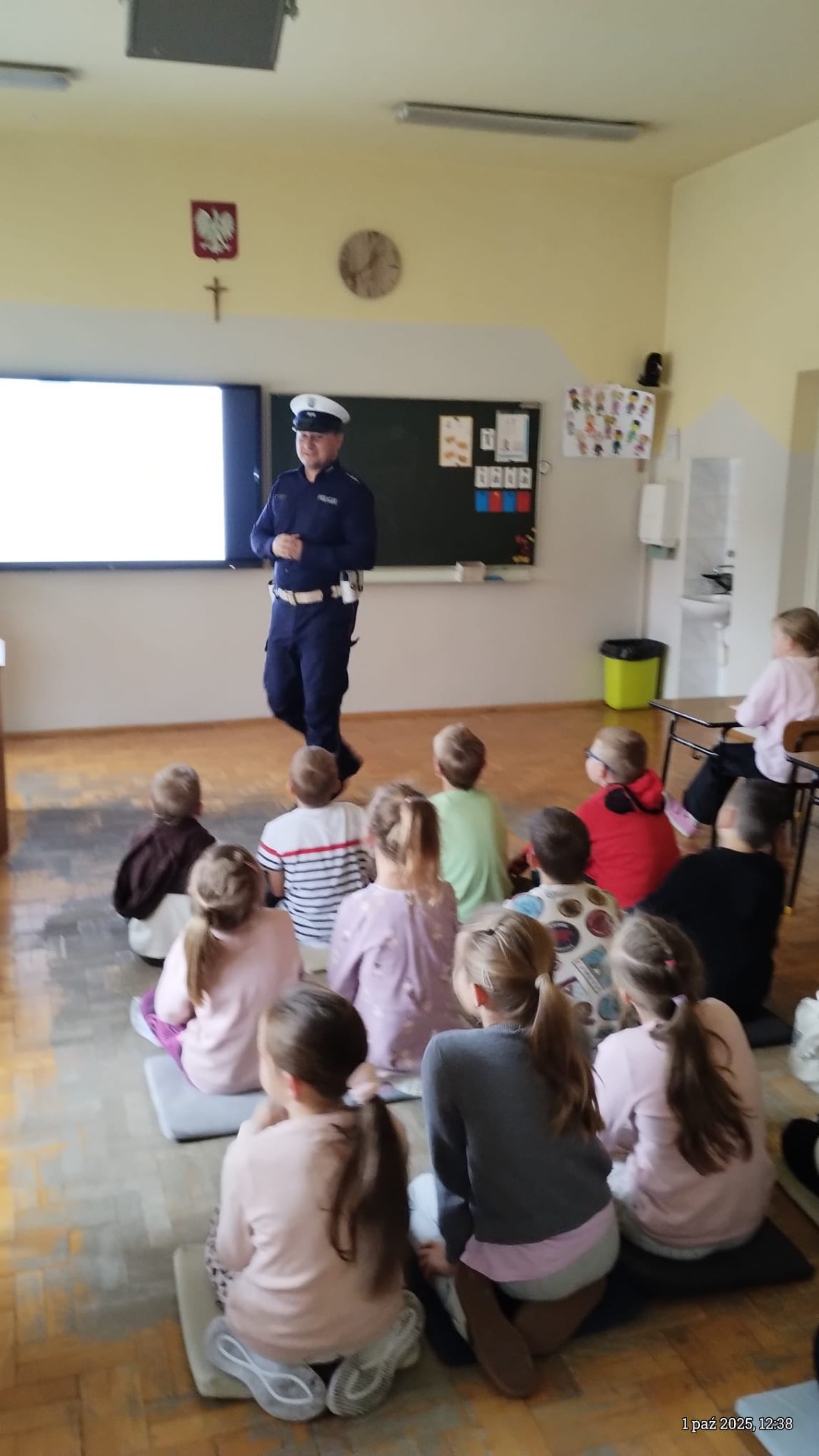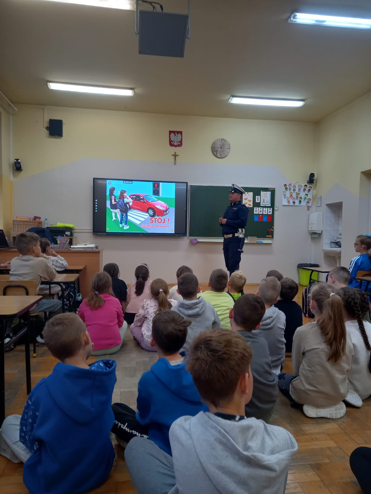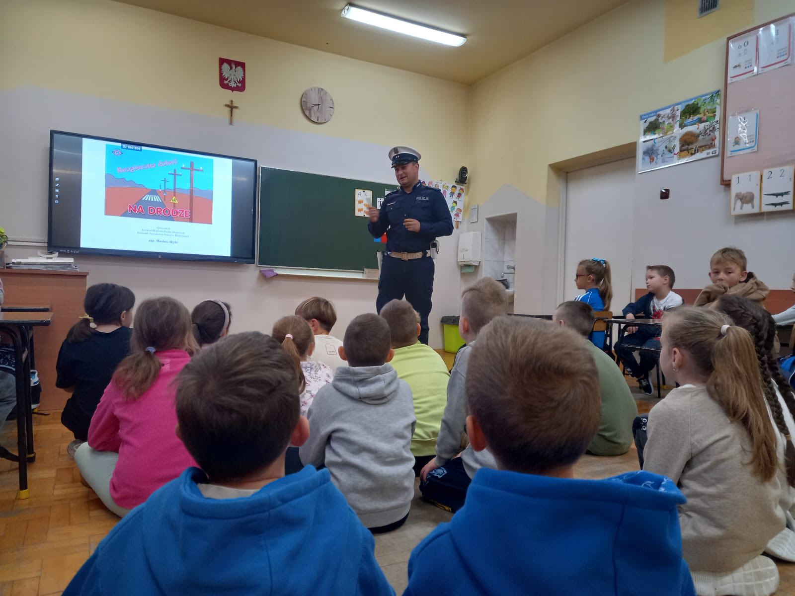 Spotkanie z Asystentem Wydziału Ruchu Drogowego Komendy Powiatowej Policji w Wadowicach asp. Mariuszem Bryłą w klasach 1-3