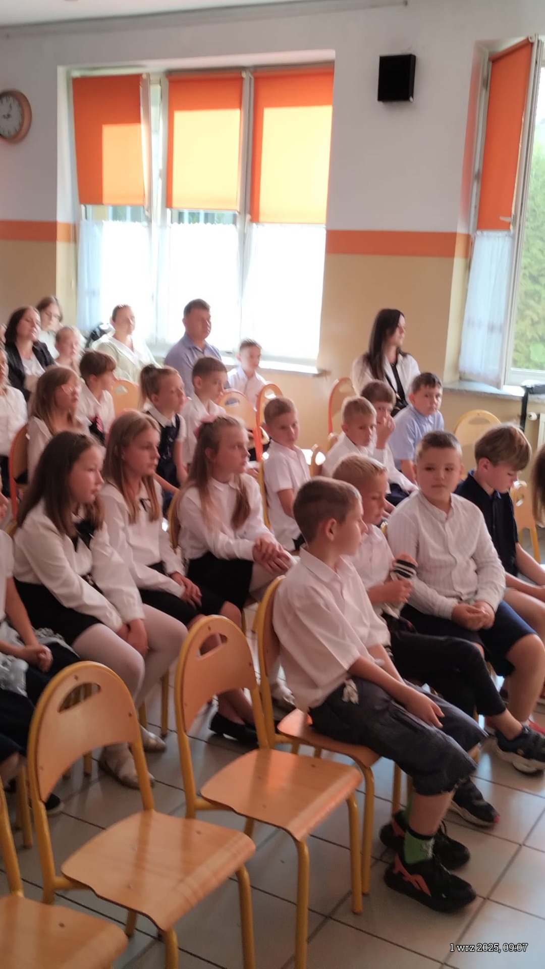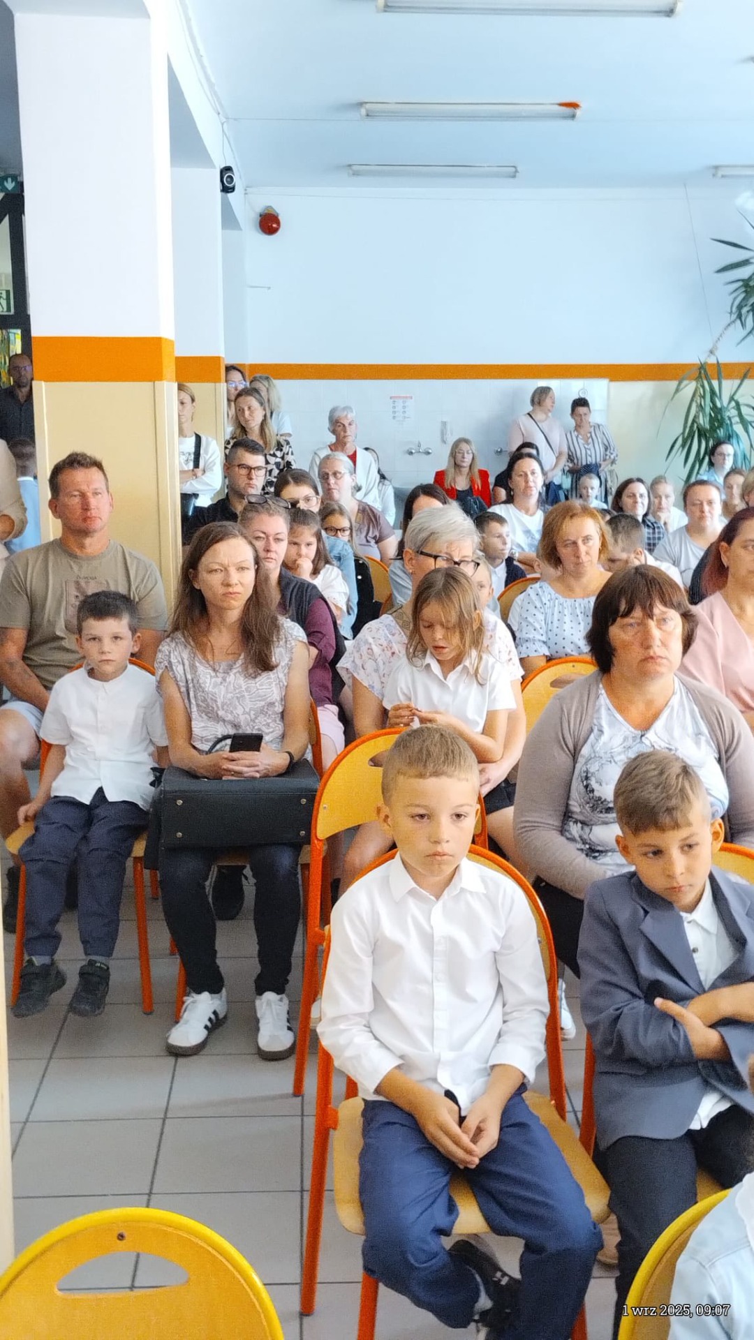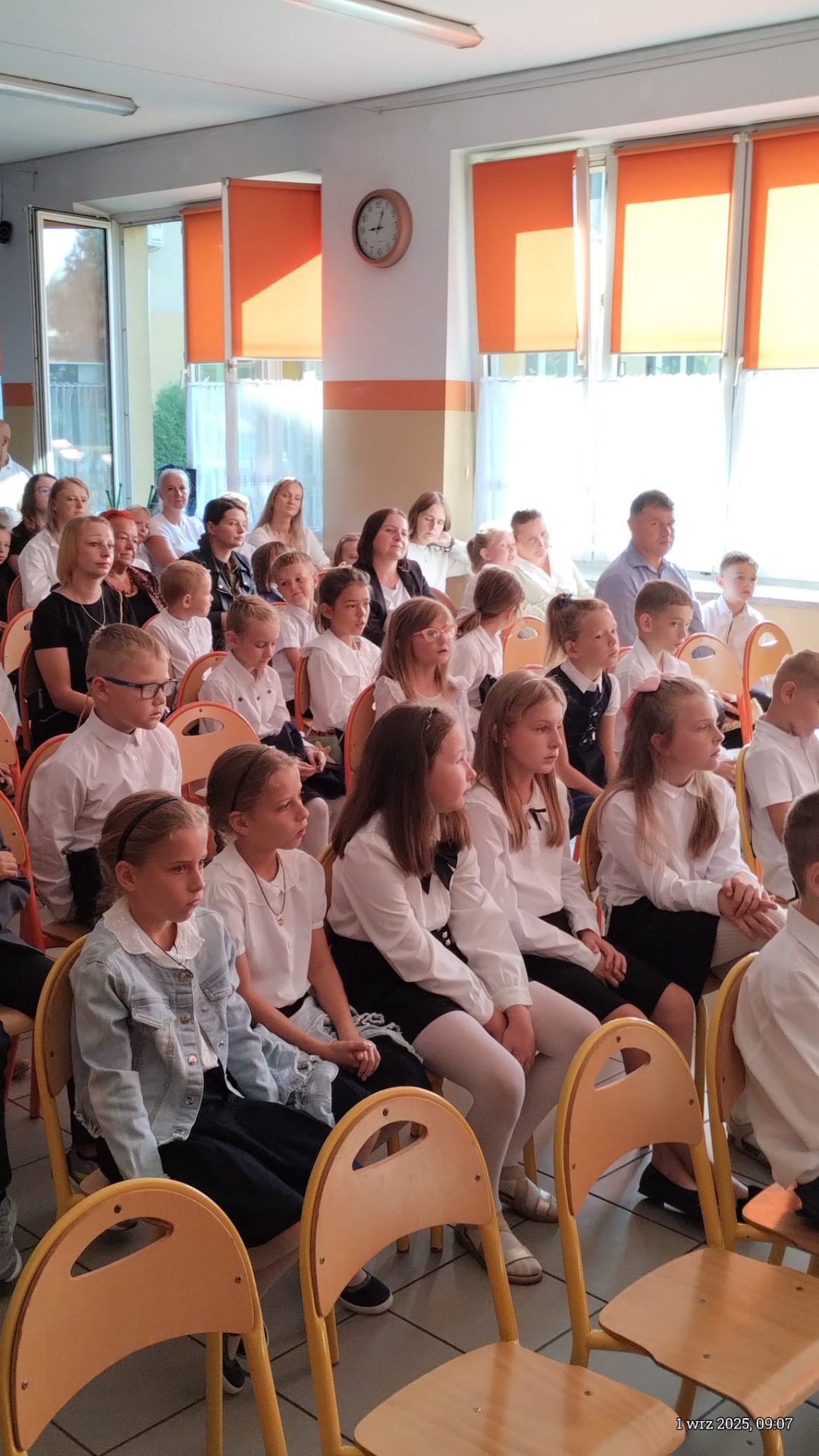 Podczas uroczystego rozpoczęcia roku szkolnego 2025/2026 zgromadzili się licznie na jadalni uczniowie klas 1-3, rodzice i nauczyciele. Przybyłych na uroczystość powitała pani v-ce dyrektor Marta Szczur oraz przekazała najistotniejsze informacje dotyczące organizacji nowego roku szkolnego. Szczególnie serdecznie zostali przywitani najmłodsi uczniowie naszej szkoły. Część artystyczną przygotowali uczniowie klasy 3a i 3b. Na zakończenie wszyscy udali się na spotkanie ze swoimi wychowawcami. Życzymy wszystkim uczniom, aby ten nowy rok szkolny był czasem odkrywania nowych pasji i zainteresowań, budowaniem wartościowych relacji koleżeńskich oraz wielu sukcesów i tych mniejszych i większych, a rodzicom radości z osiągnięć ich pociech.