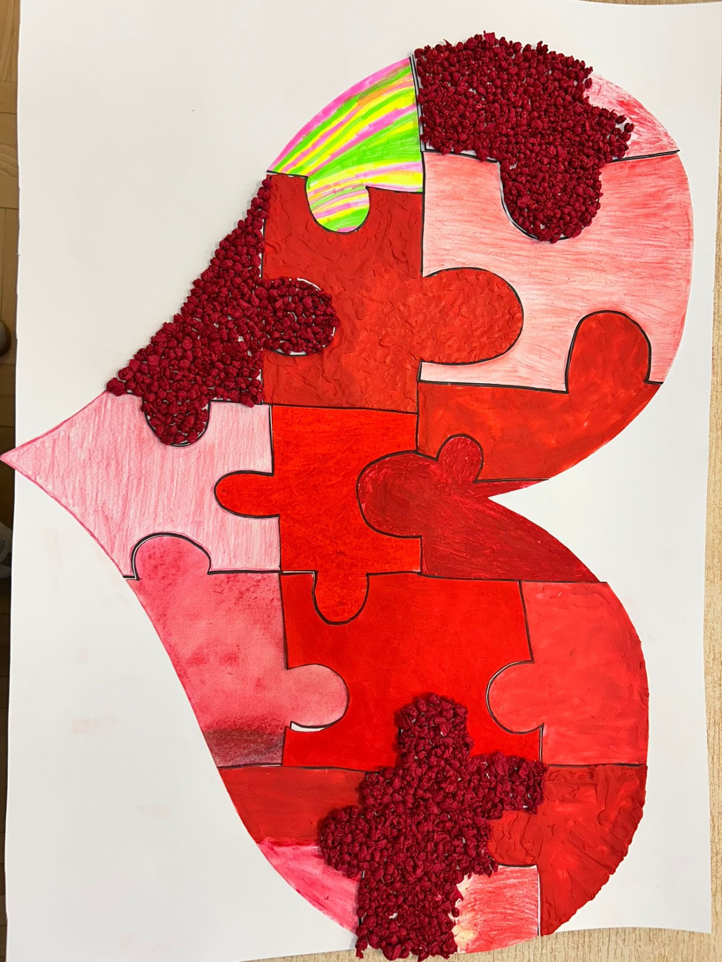 Dziś uczniowie tworzyli niezwykłe dzieło - serce pełne historii. Każdy z nich samodzielnie ozdobił kawałek puzzla, a następnie wszystkie elementy zostały połączone w jedną całość, tworząc symboliczne serce.