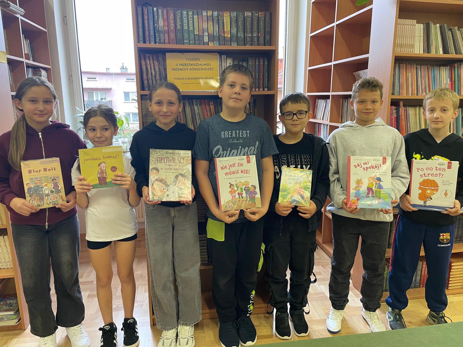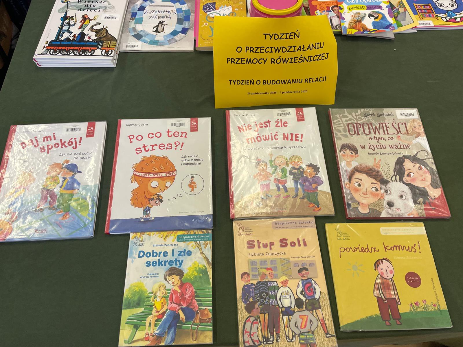 Biblioteka szkolna włącza się w Tydzień o przeciwdziałaniu przemocy rówieśniczej i Tydzień o budowaniu relacji poprzez promocję książek o tej tematyce. Niektóre z książek były czytane uczniom