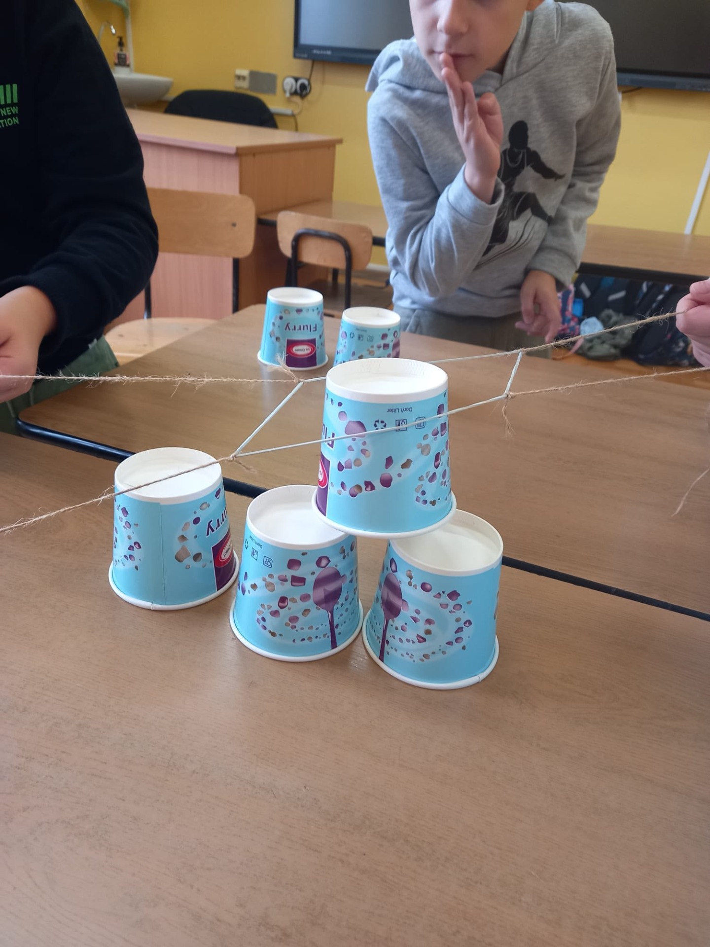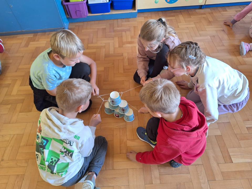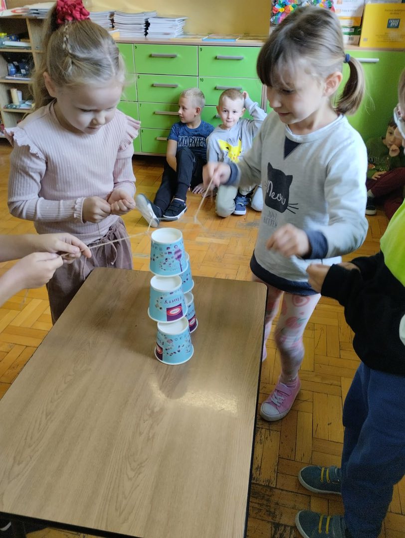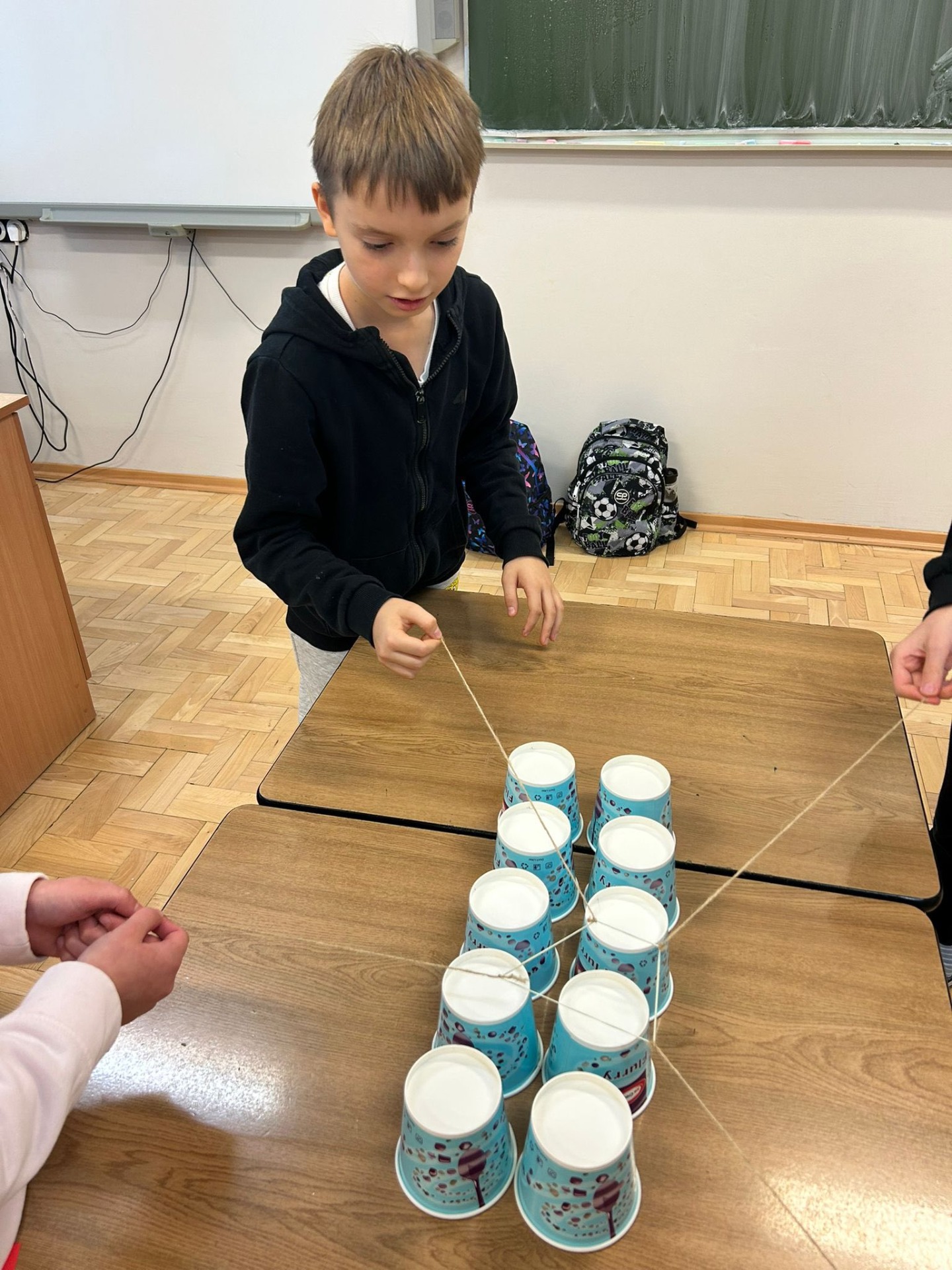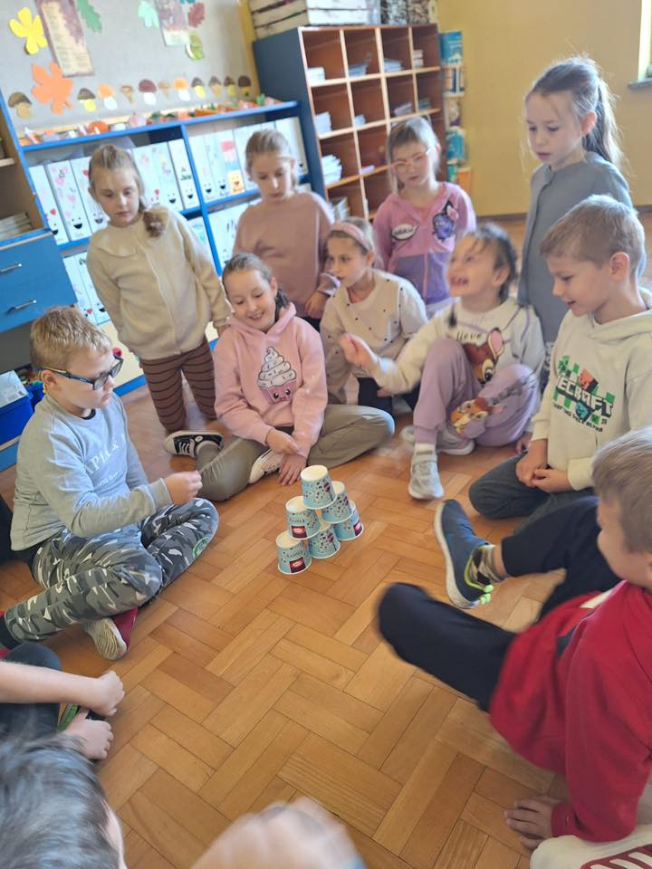Budowanie wieży stało się symbolem - tak jak kubki ustawiane jeden na drugim tworzą stabilną całość, tak i relacje w klasie stają się mocne, gdy opierają się na zaufaniu i wzajemnym wsparciu.