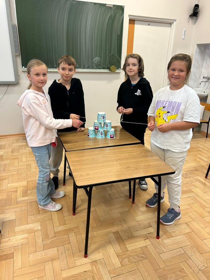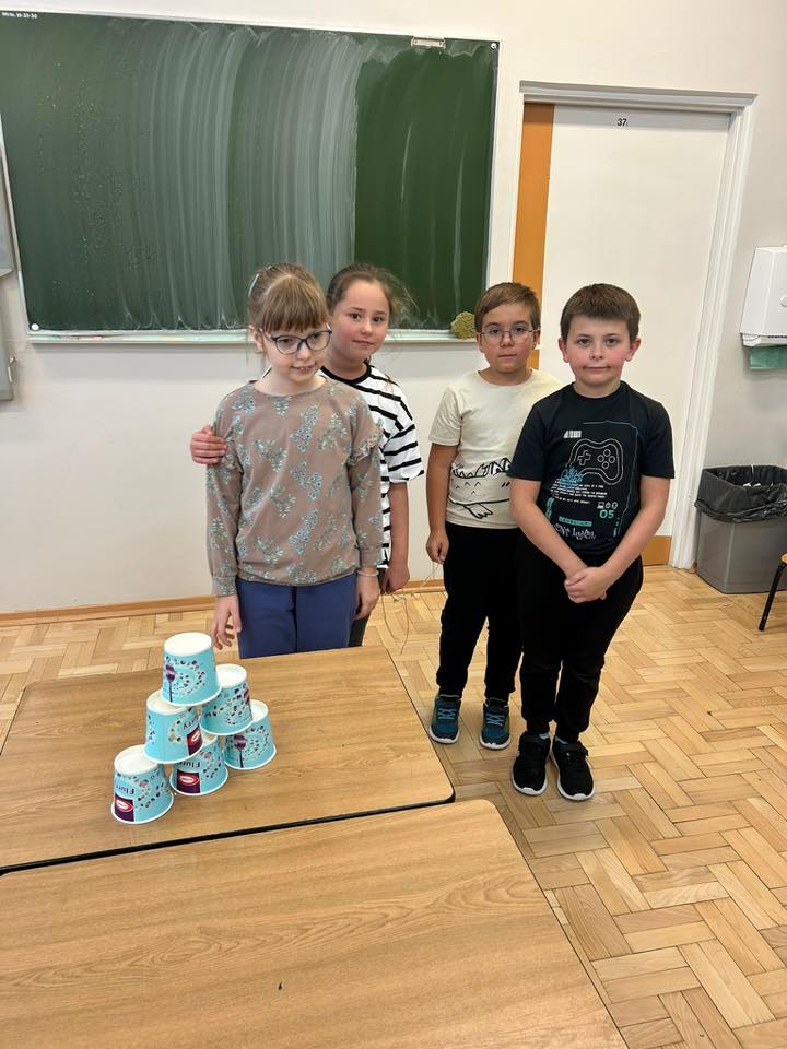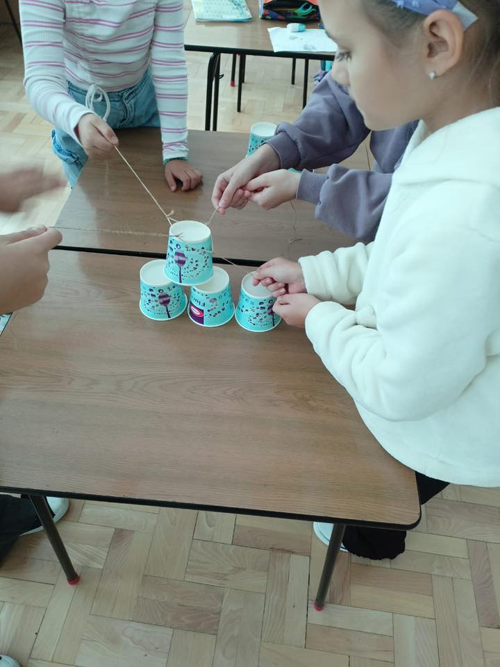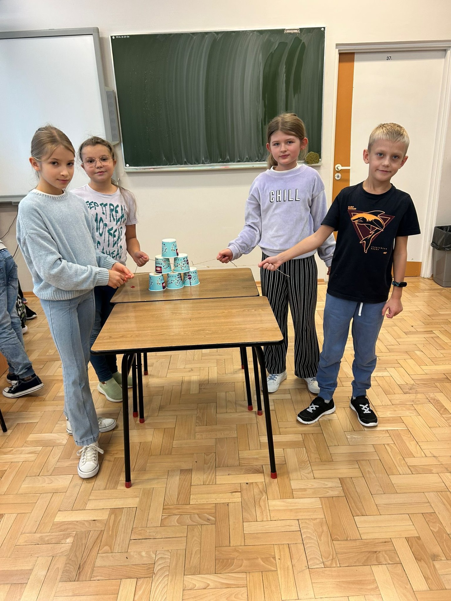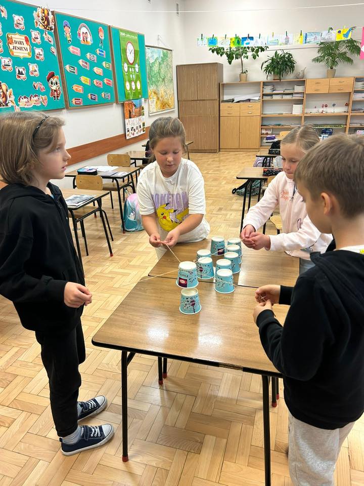 Budowanie wieży stało się symbolem - tak jak kubki ustawiane jeden na drugim tworzą stabilną całość, tak i relacje w klasie stają się mocne, gdy opierają się na zaufaniu i wzajemnym wsparciu.