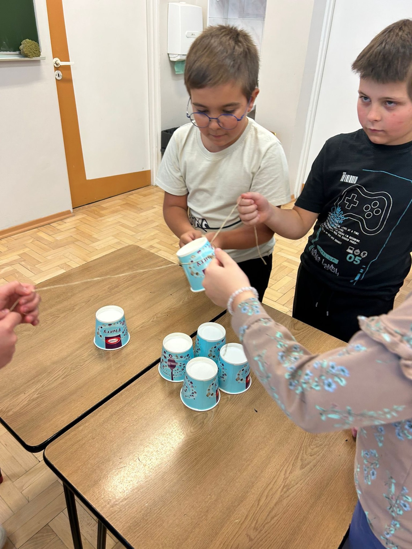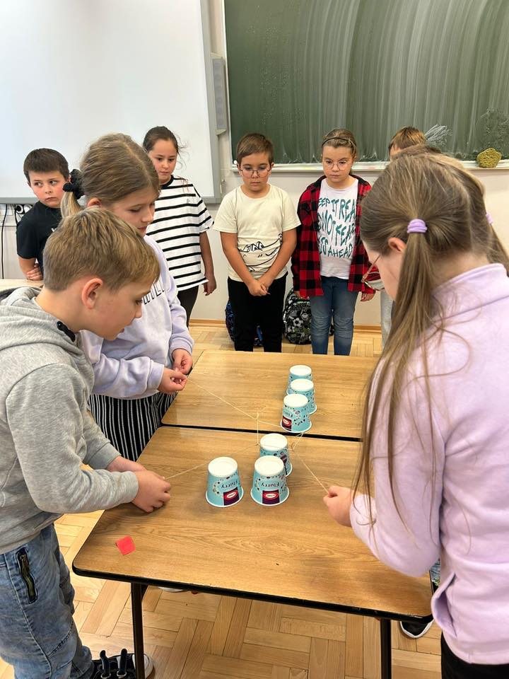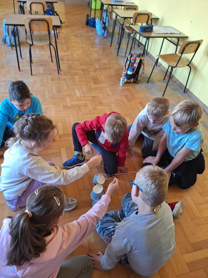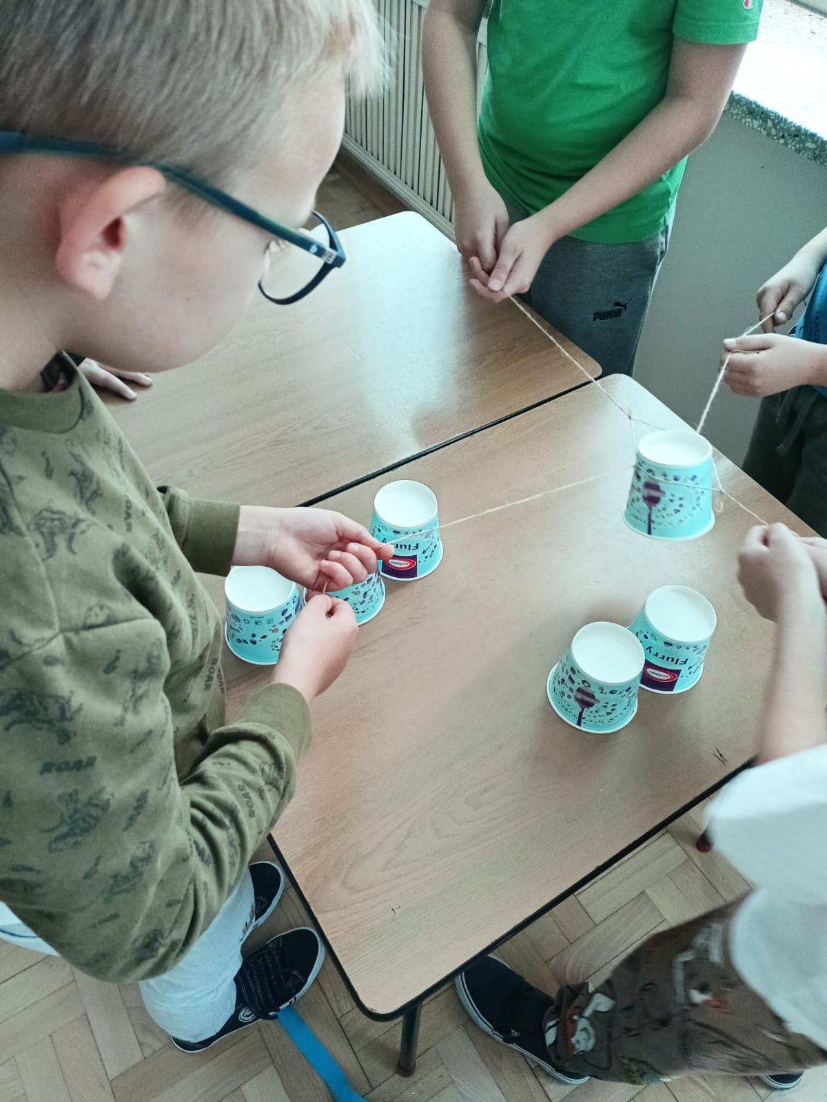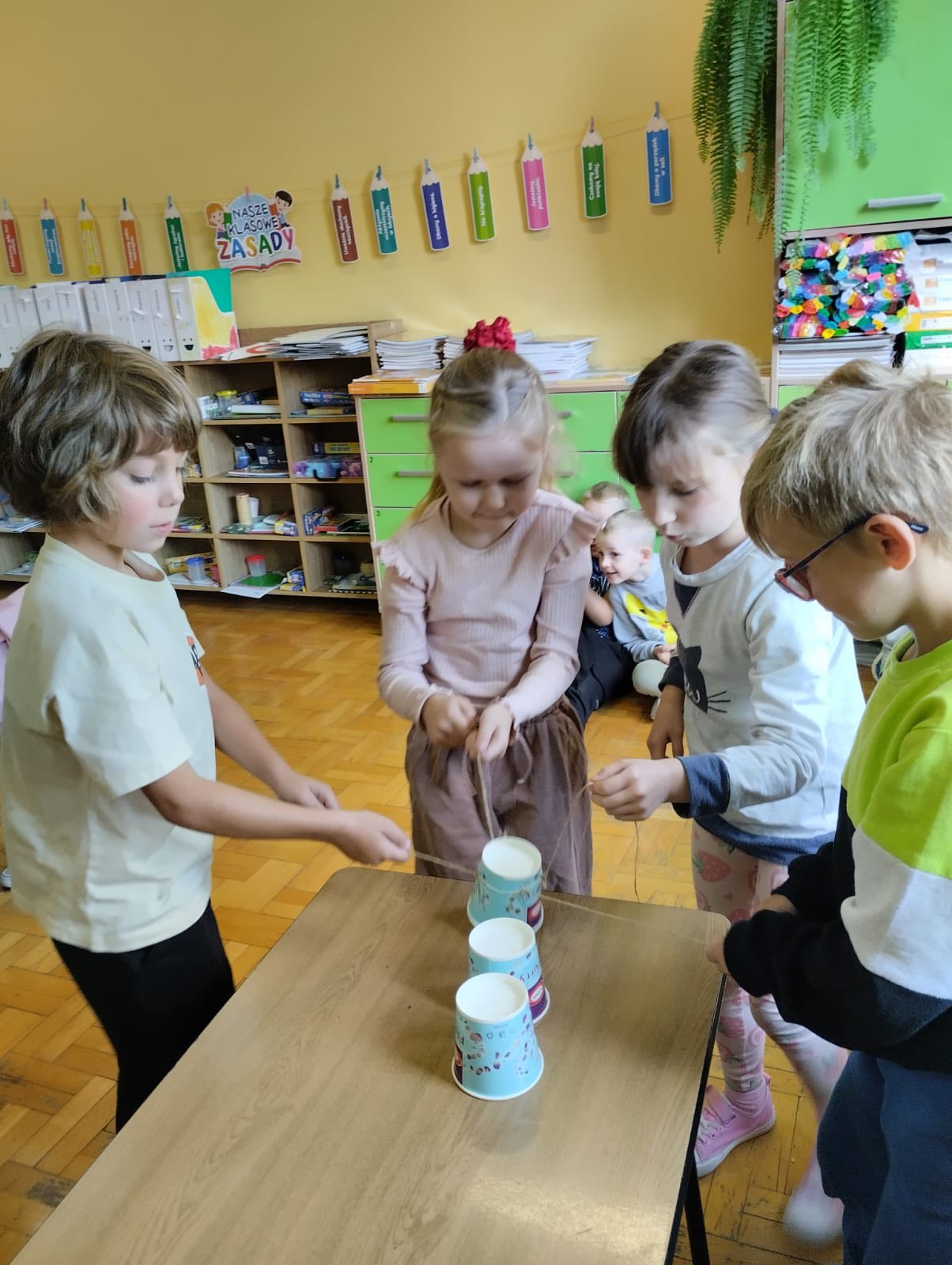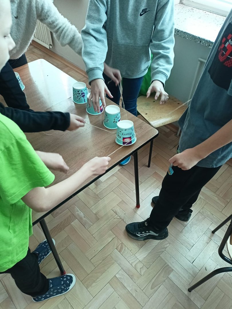 Dzisiejszym hasłem było „Zaufanie i współpraca”. Uczniowie wzięli udział w zabawach manipulacyjnych z kubkami, których celem było wspólne budowanie wieży.