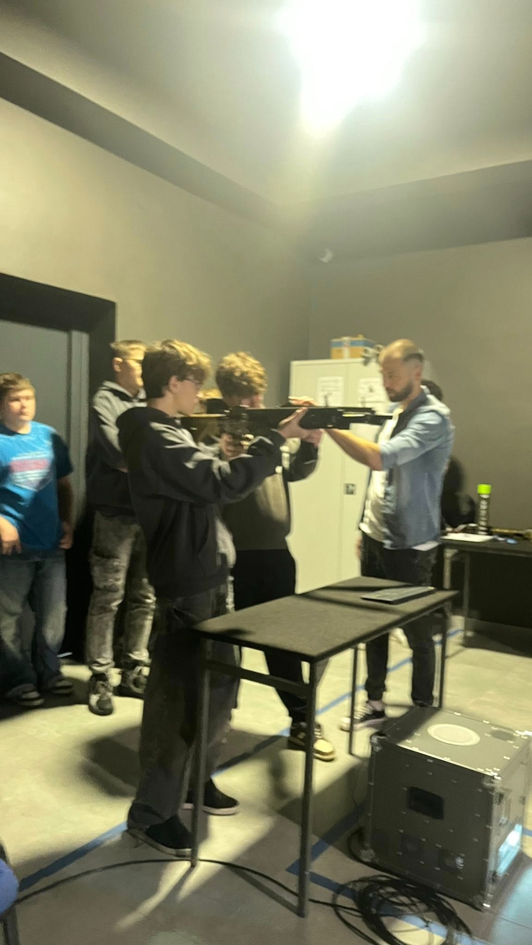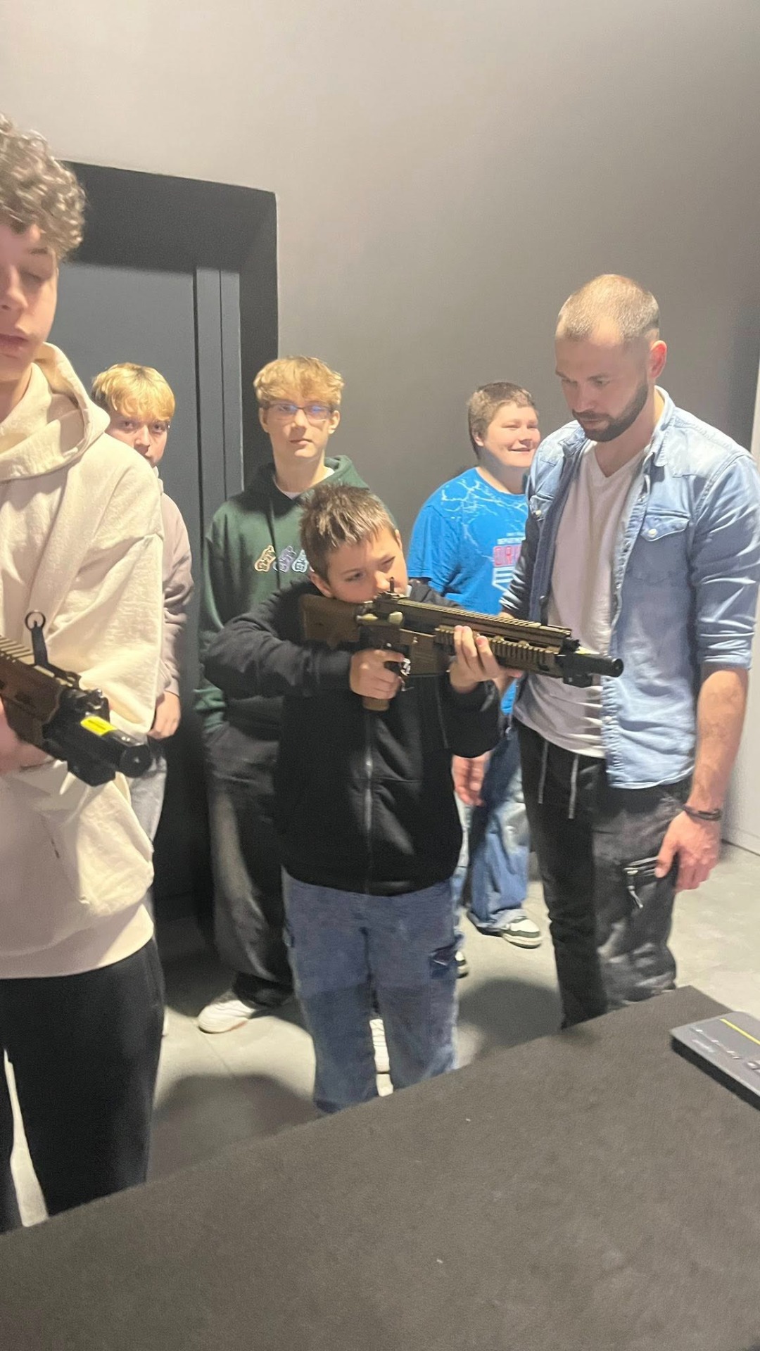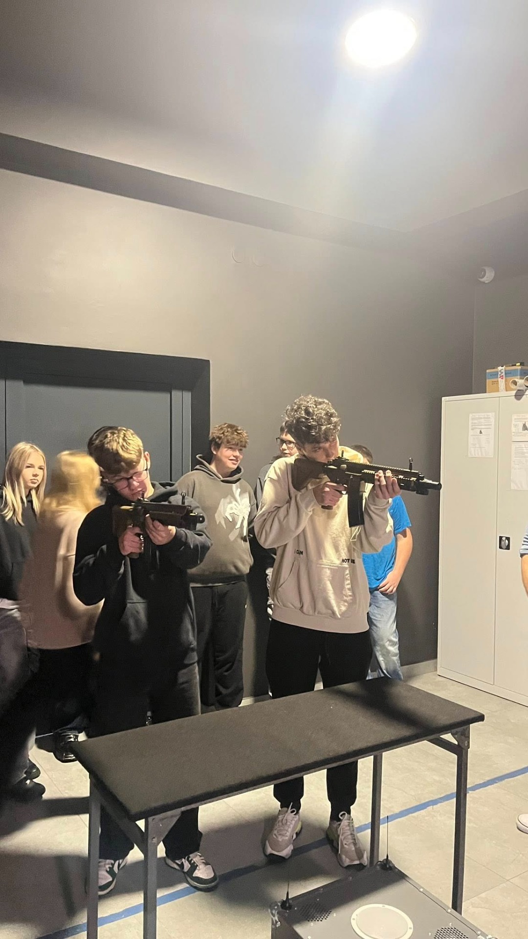 Dzisiaj uczniowie klasy 8a wzięli udział w zajęciach proobronnych zorganizowanych na wirtualnej strzelnicy w Zespole Szkół i Placówek Oświatowych im. Mikołaja Kopernika w Kalwarii Zebrzydowskiej.
