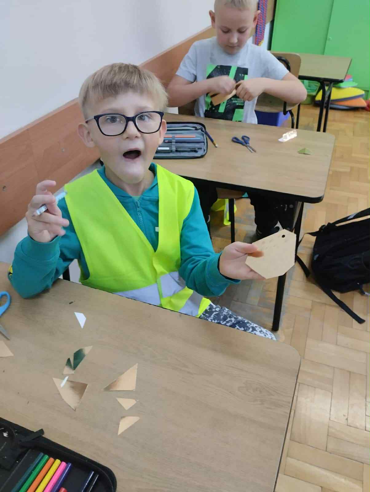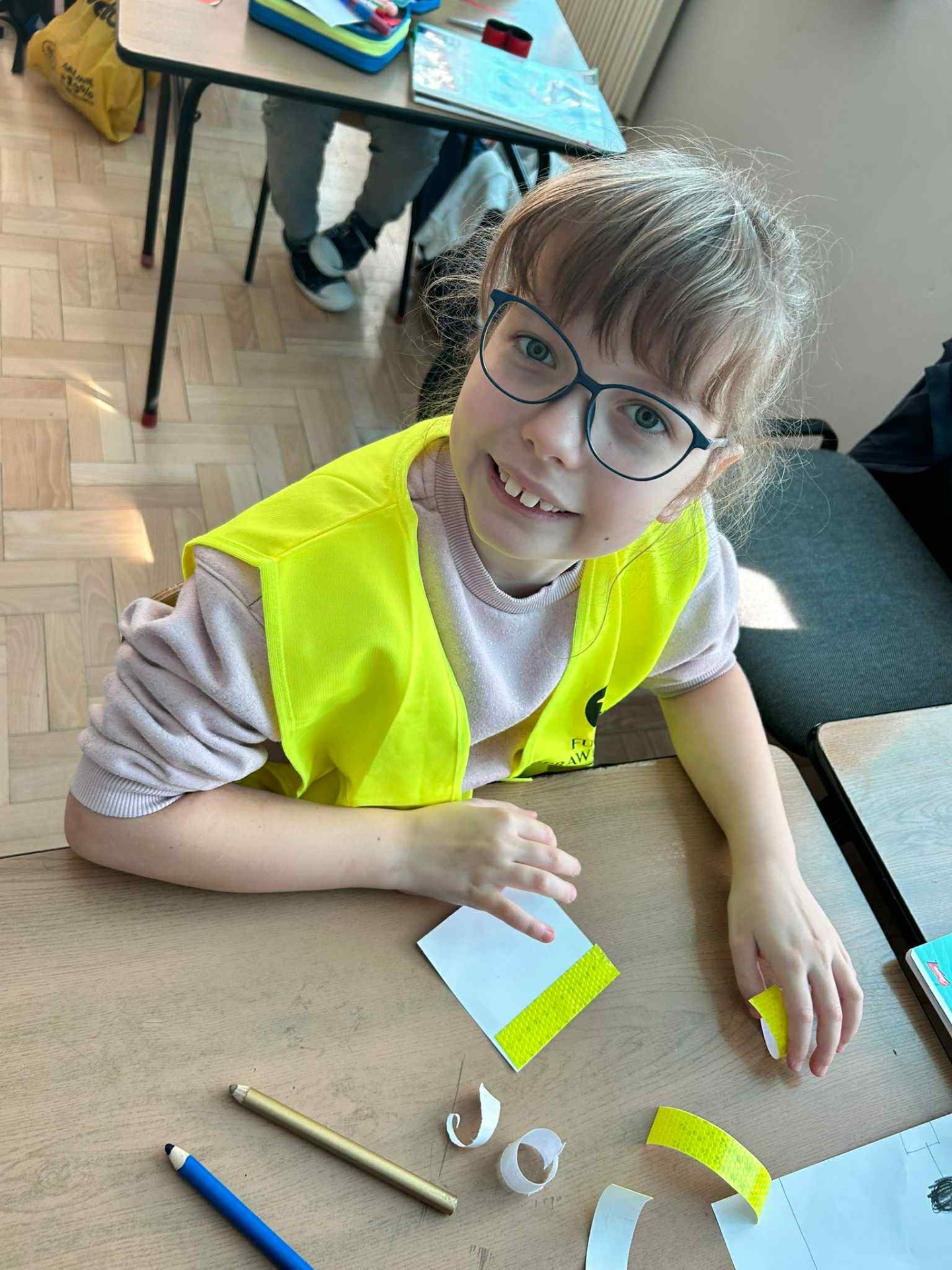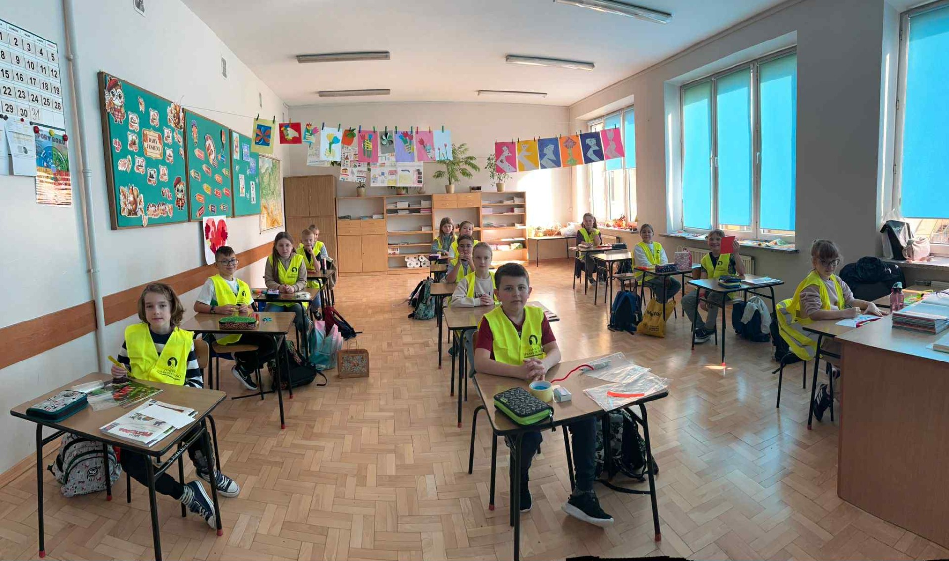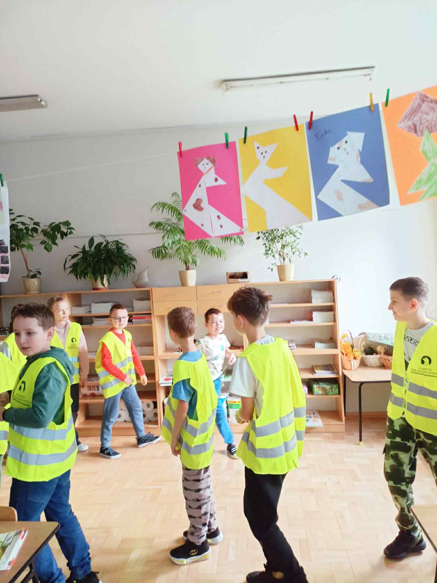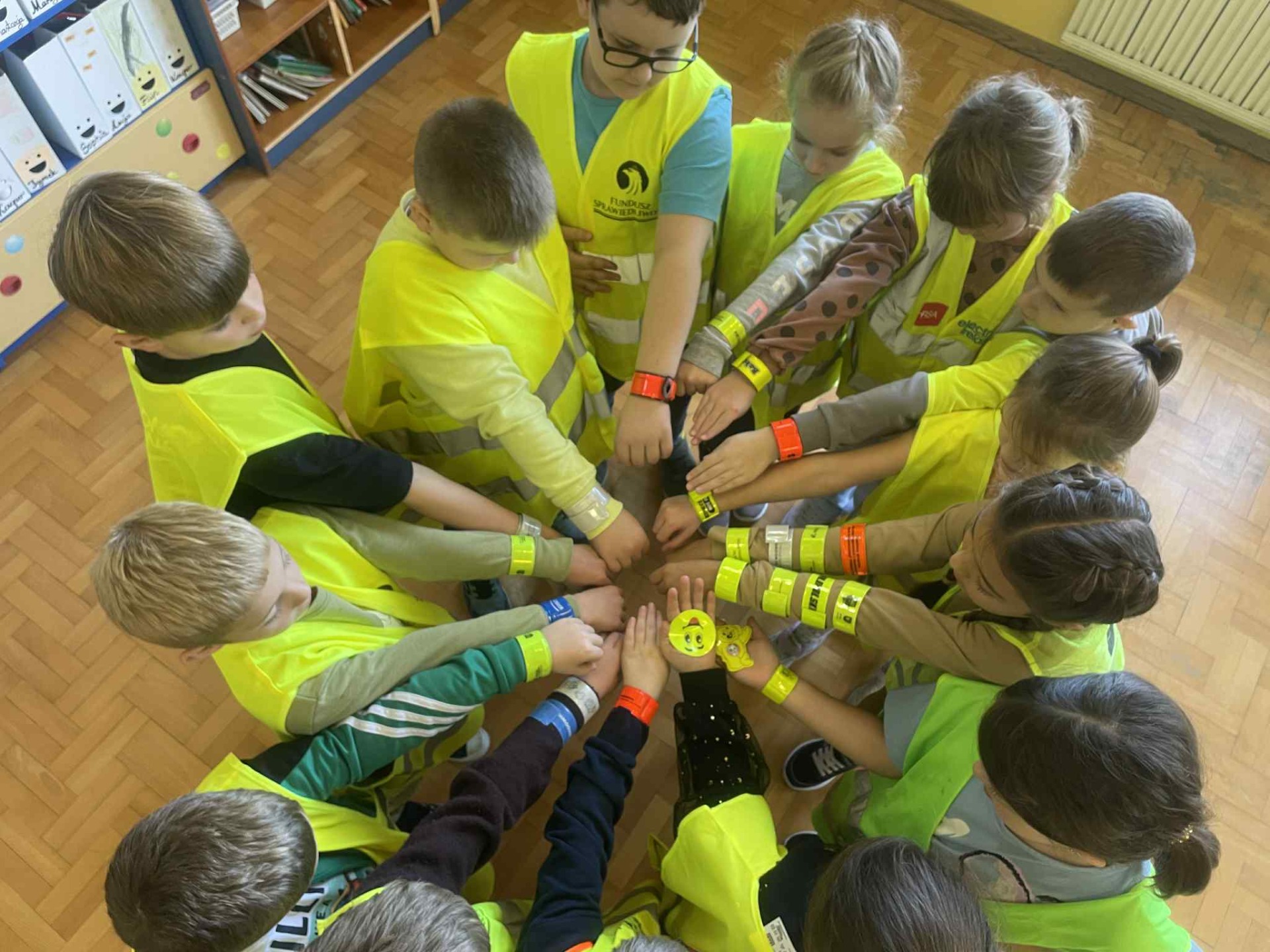 Dziś w klasach I-III obchodziliśmy Odblaskowy Dzień. Już od rana w szkolnych korytarzach było wyjątkowo kolorowo i jasno, a to za sprawą naszych uczniów, którzy z dumą nosili kamizelki odblaskowe i prezentowali odblaski, które na co dzień przypinają do plecaków, kurtek czy rowerów. Podczas zajęć dzieci rozmawiały o znaczeniu noszenia elementów odblaskowych, oglądały materiały edukacyjne i wspólnie zastanawiały się, jak dbać o swoje bezpieczeństwo na drodze, szczególnie jesienią i zimą. Nie zabrakło także muzyki i ruchu - uczniowie z radością śpiewali piosenkę „Znaczki odblaskowe” i uczestniczyli w zabawach muzyczno-ruchowych inspirowanych jej treścią. Uczniowie byli również na spacerze po najbliższej okolicy, gdzie zwracali uwagę na zasady poruszania się po drodze. Na zakończenie dnia uczniowie wykazali się ogromną kreatywnością, projektując i tworząc własne odblaski - kolorowe, błyszczące i przede wszystkim bezpieczne. To był dzień pełen uśmiechu, dobrej zabawy i cennej nauki - bo przecież być widocznym to być bezpiecznym!