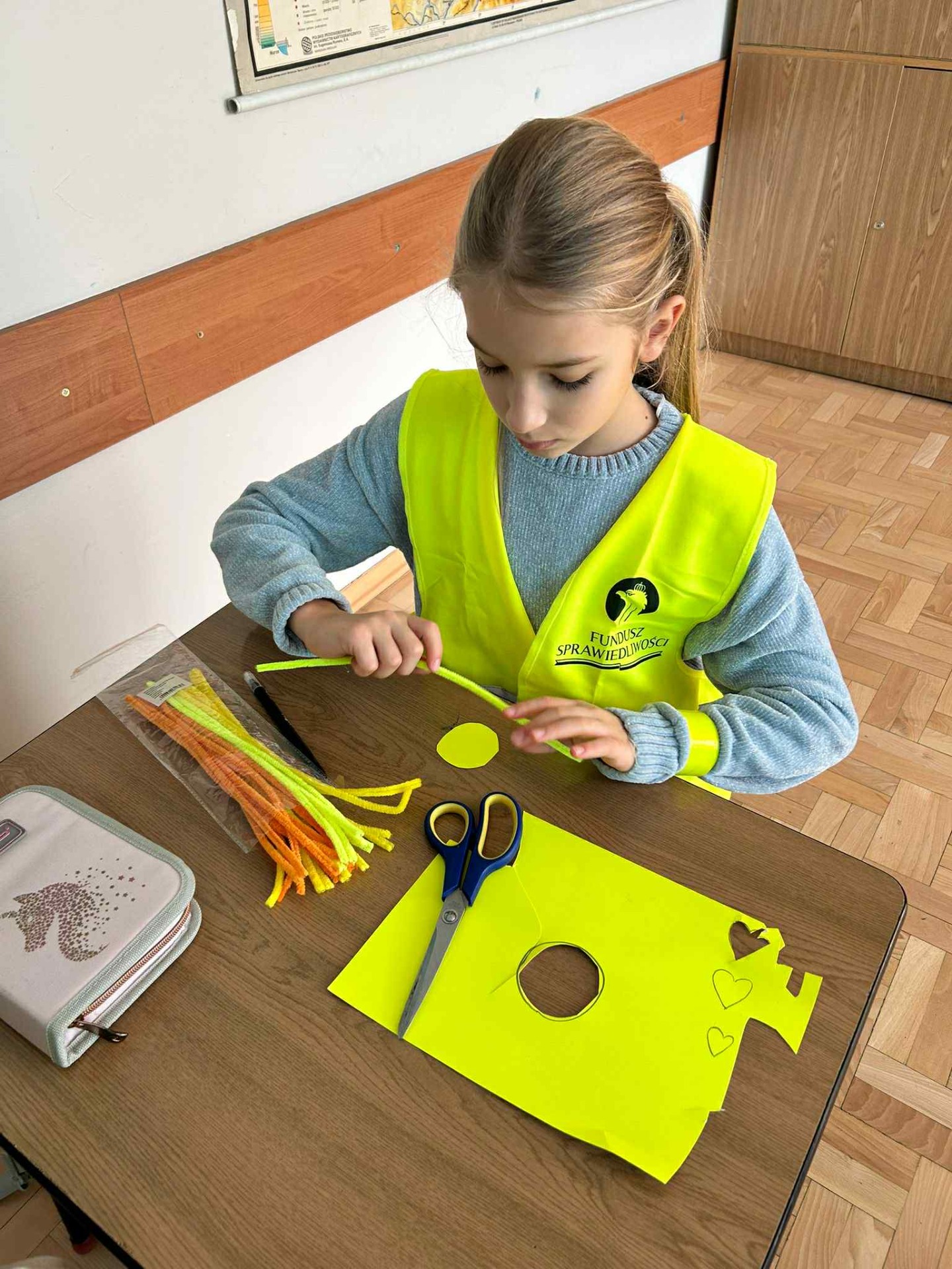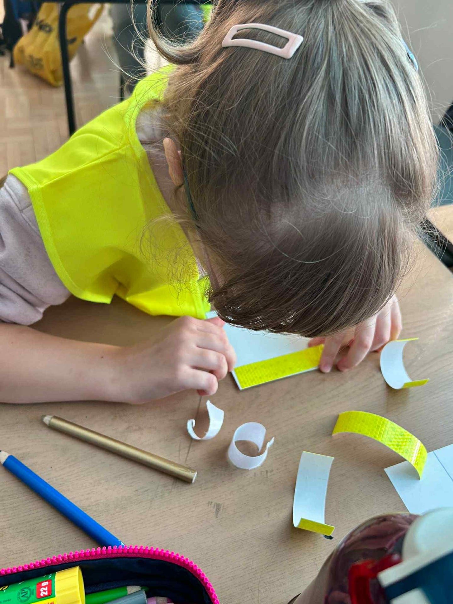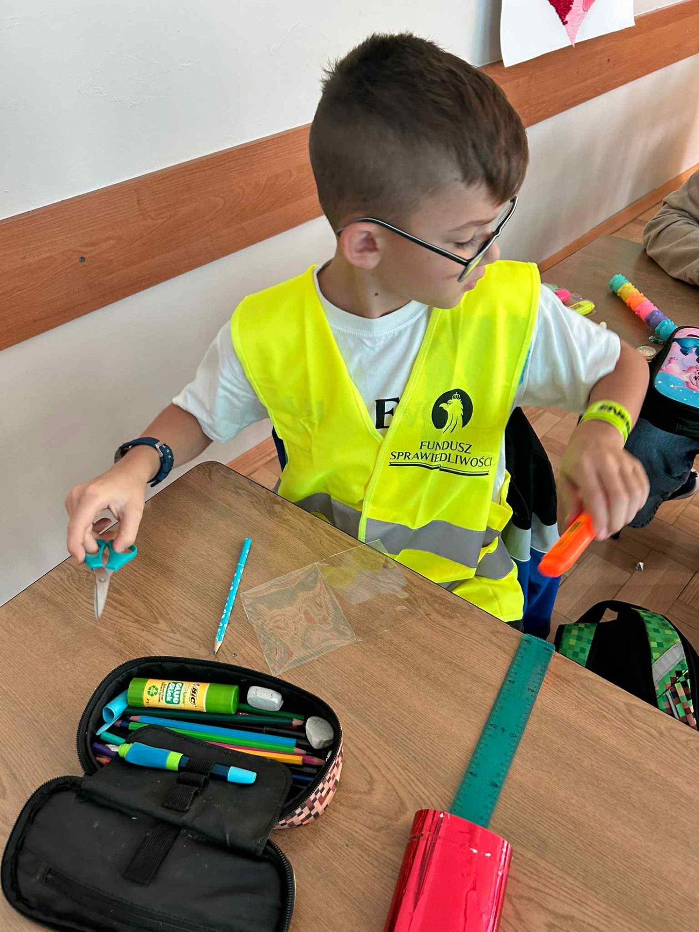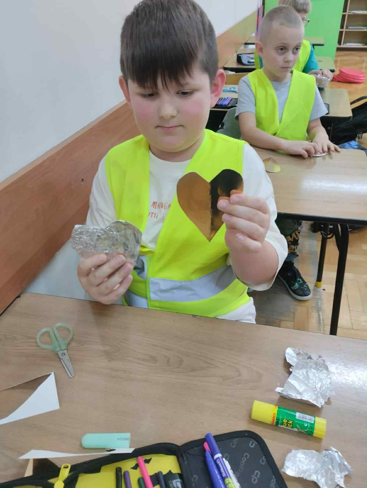 Dziś w klasach I-III obchodziliśmy Odblaskowy Dzień. Już od rana w szkolnych korytarzach było wyjątkowo kolorowo i jasno, a to za sprawą naszych uczniów, którzy z dumą nosili kamizelki odblaskowe i prezentowali odblaski, które na co dzień przypinają do plecaków, kurtek czy rowerów. Podczas zajęć dzieci rozmawiały o znaczeniu noszenia elementów odblaskowych, oglądały materiały edukacyjne i wspólnie zastanawiały się, jak dbać o swoje bezpieczeństwo na drodze, szczególnie jesienią i zimą. Nie zabrakło także muzyki i ruchu - uczniowie z radością śpiewali piosenkę „Znaczki odblaskowe” i uczestniczyli w zabawach muzyczno-ruchowych inspirowanych jej treścią. Uczniowie byli również na spacerze po najbliższej okolicy, gdzie zwracali uwagę na zasady poruszania się po drodze. Na zakończenie dnia uczniowie wykazali się ogromną kreatywnością, projektując i tworząc własne odblaski - kolorowe, błyszczące i przede wszystkim bezpieczne. To był dzień pełen uśmiechu, dobrej zabawy i cennej nauki - bo przecież być widocznym to być bezpiecznym!