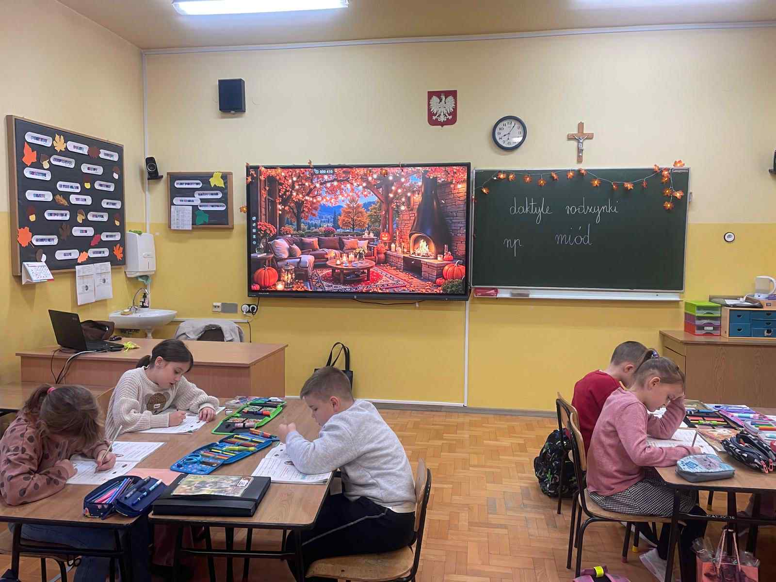 Dziś nasi uczniowie umilili sobie naukę, wprowadzając do klasy jesienny nastrój - pojawiły się piękne, klimatyczne obrazy inspirowane jesienią, muzyka w tle i ciepła, twórcza atmosfera.
