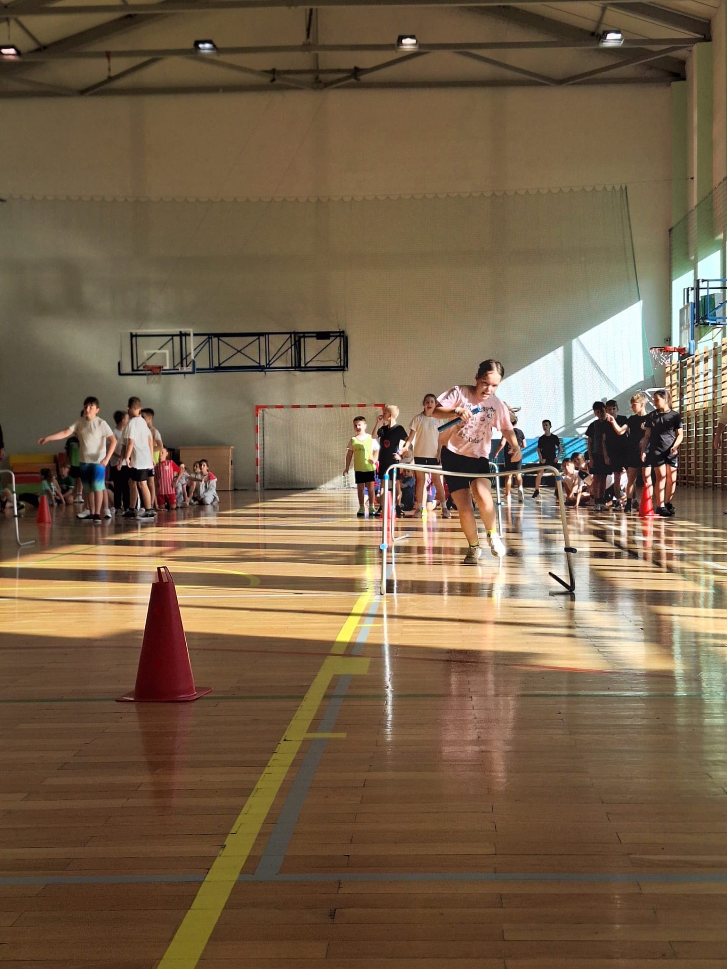 Uczniowie mogli sprawdzić swoje umiejętności w kilku konkurencjach biegowych, zwinnosciowych i rzutowych.