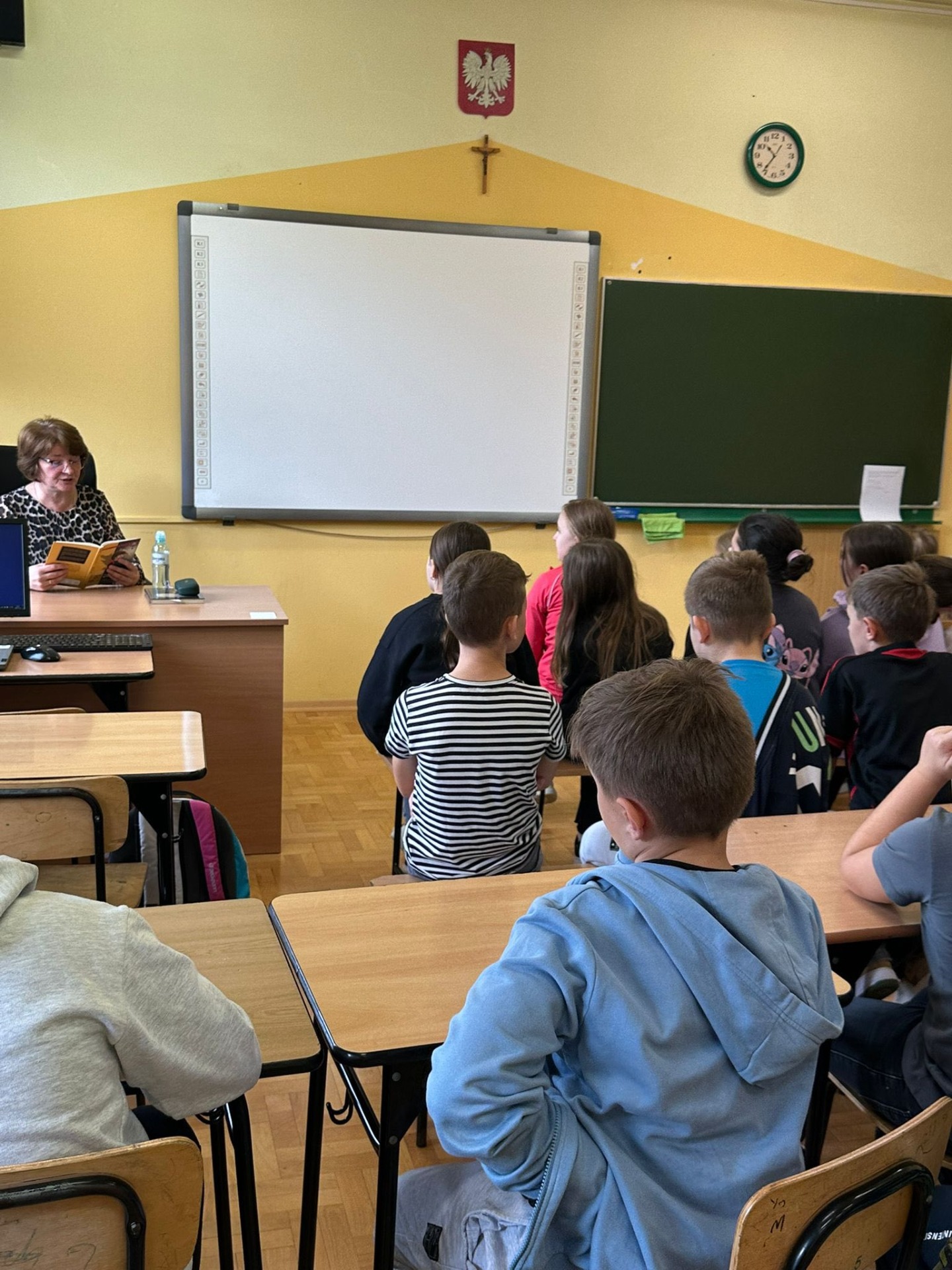 W klasach 4 pani przeczytała fragmenty książki Pawła Beręsewicza „ Od ducha do ducha” o zaskakującej przygodzie jaka przydarzyła się bohaterowi podczas czytania znanych baśni.