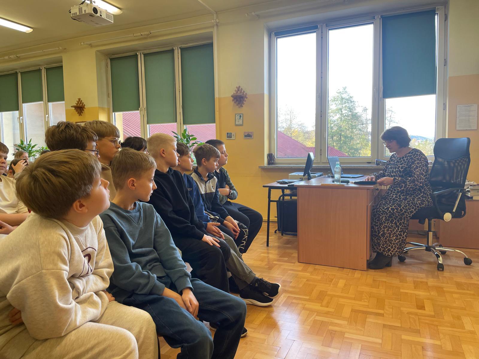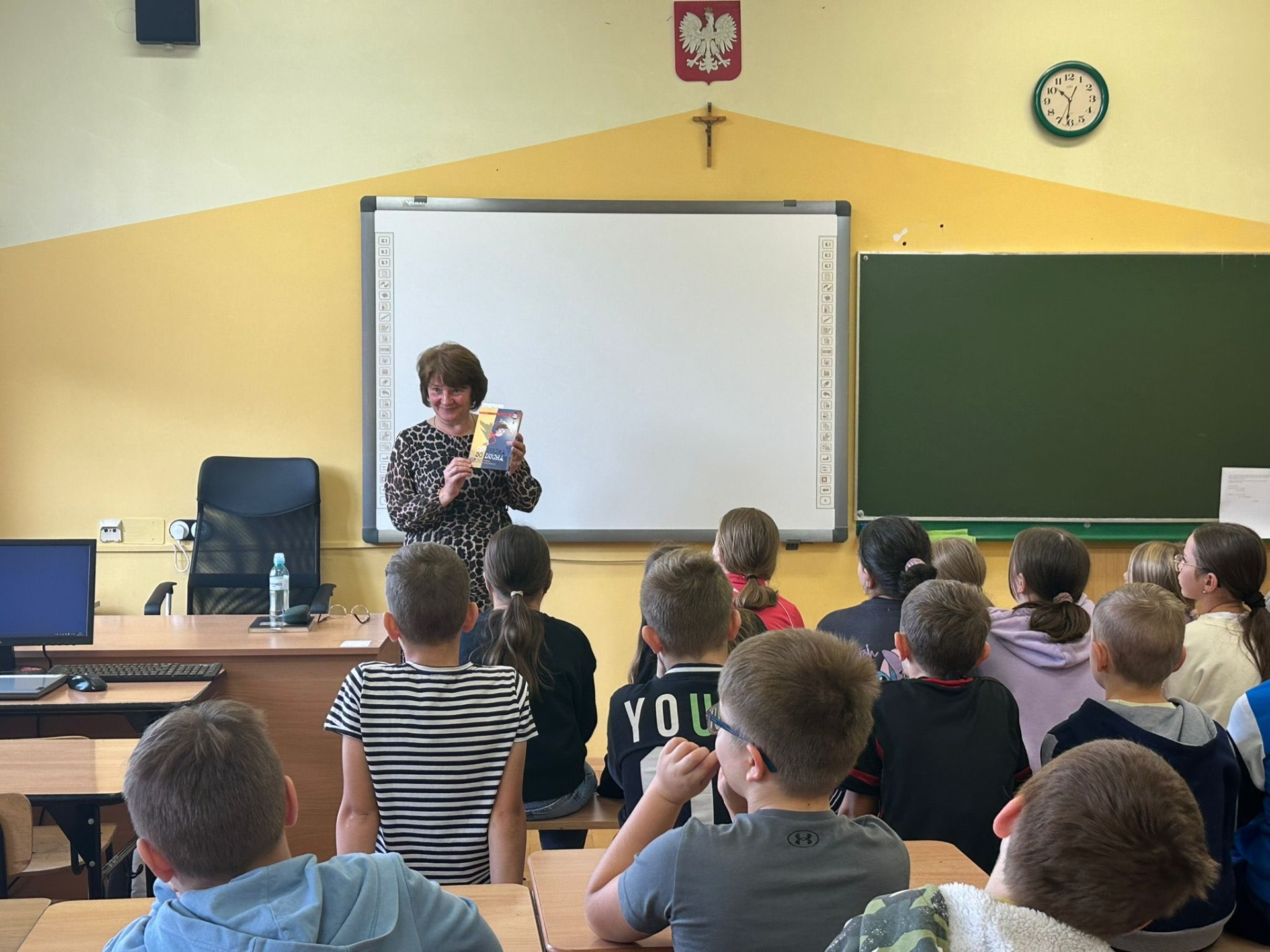 Pani z Biblioteki Pedagogicznej rozmawiała z uczniami o zaletach, korzyściach czytania, o tym jak ważne jest czytanie w rozwoju człowieka od pierwszych miesięcy przez całe życie.