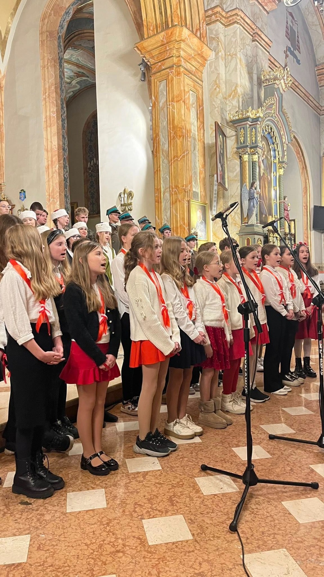 Dzisiaj, uczniowie Szkoły Podstawowej nr 1 w Choczni wzięli udział w I Lekcji Śpiewu Pieśni Patriotycznej organizowanej w Bazylice w Wadowicach, wydarzeniu mającym na celu popularyzowanie polskiej tradycji, historii oraz wartości patriotycznych poprzez wspólne śpiewanie najważniejszych utworów narodowych.