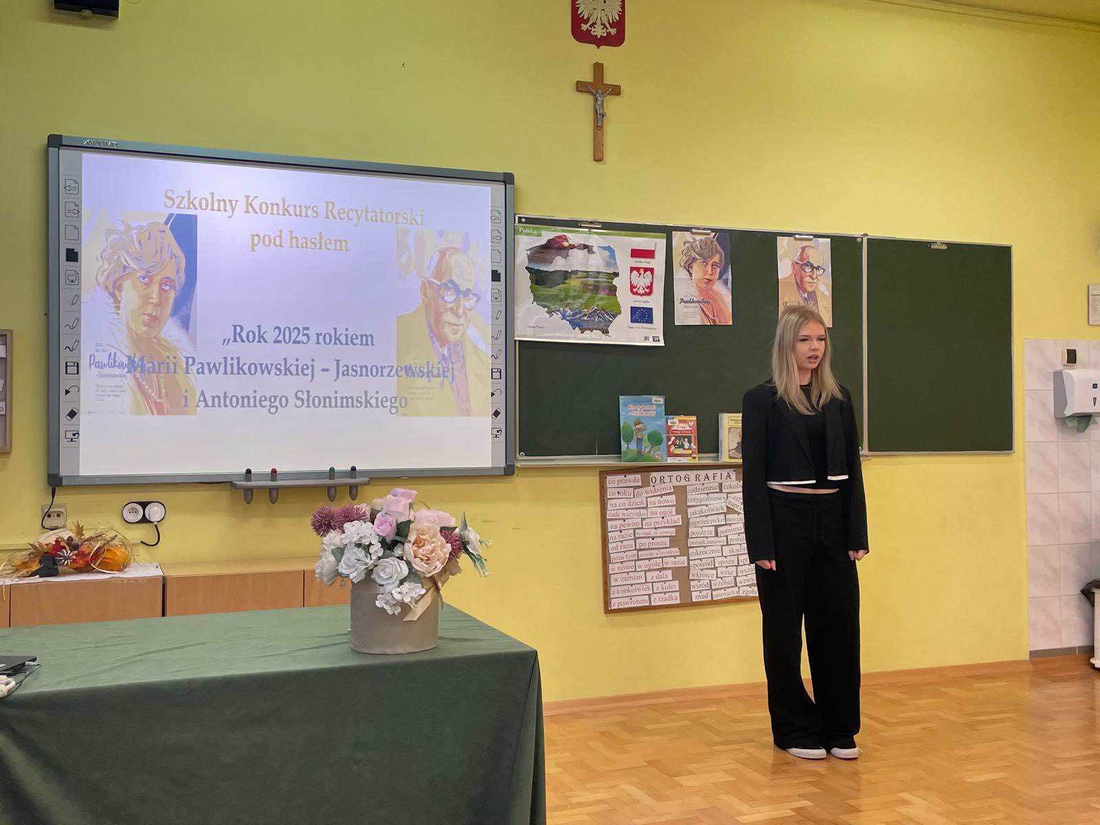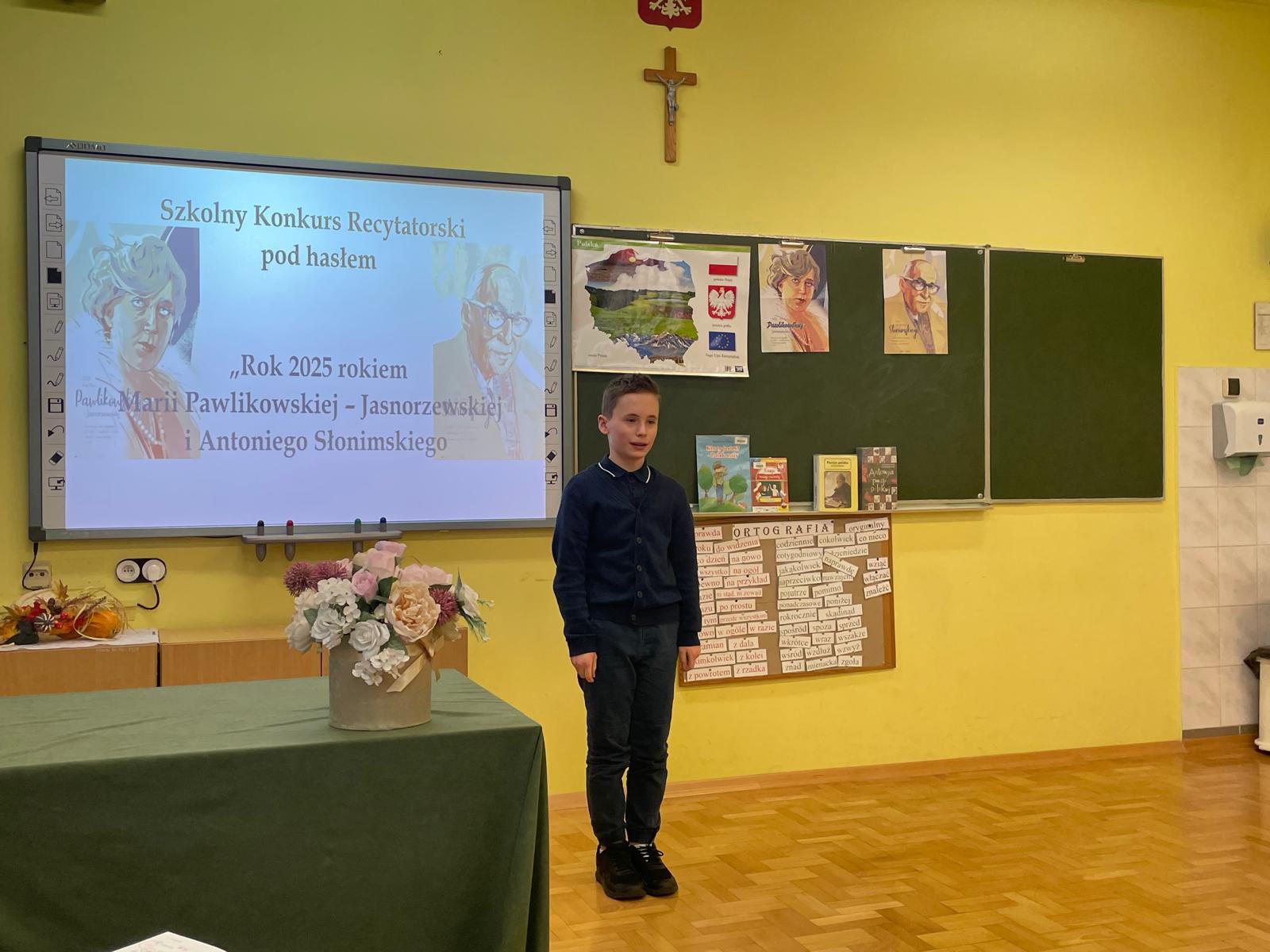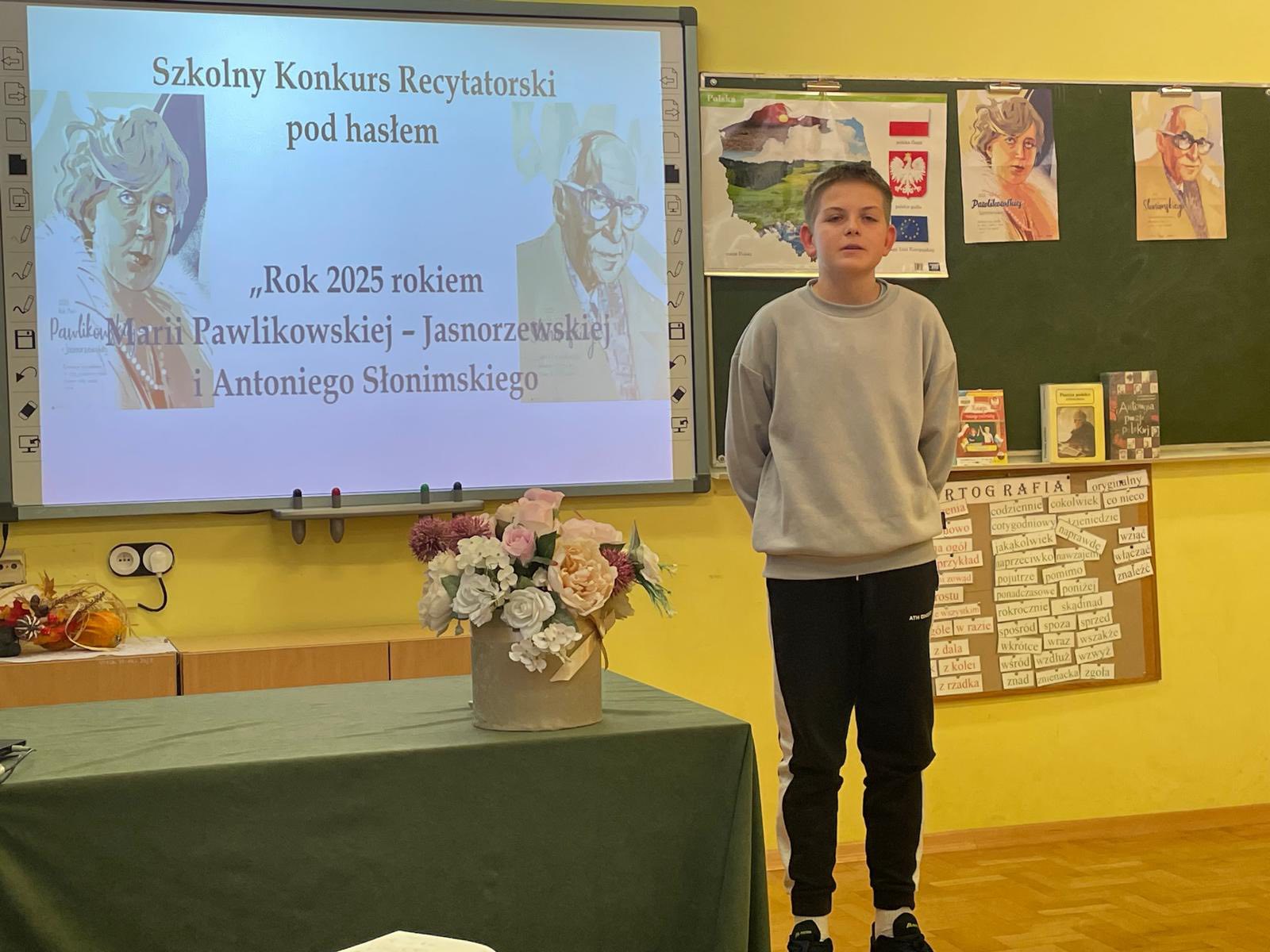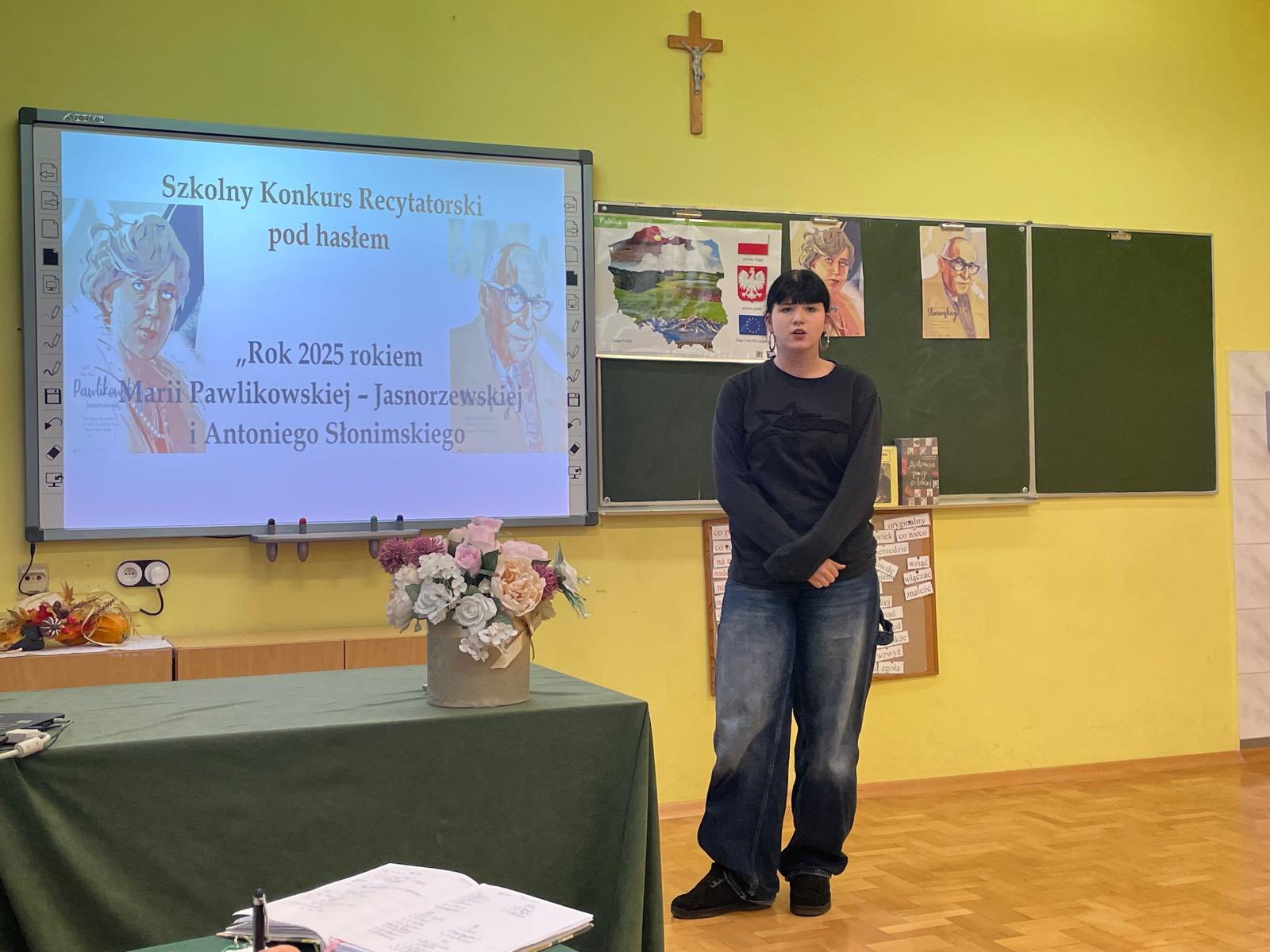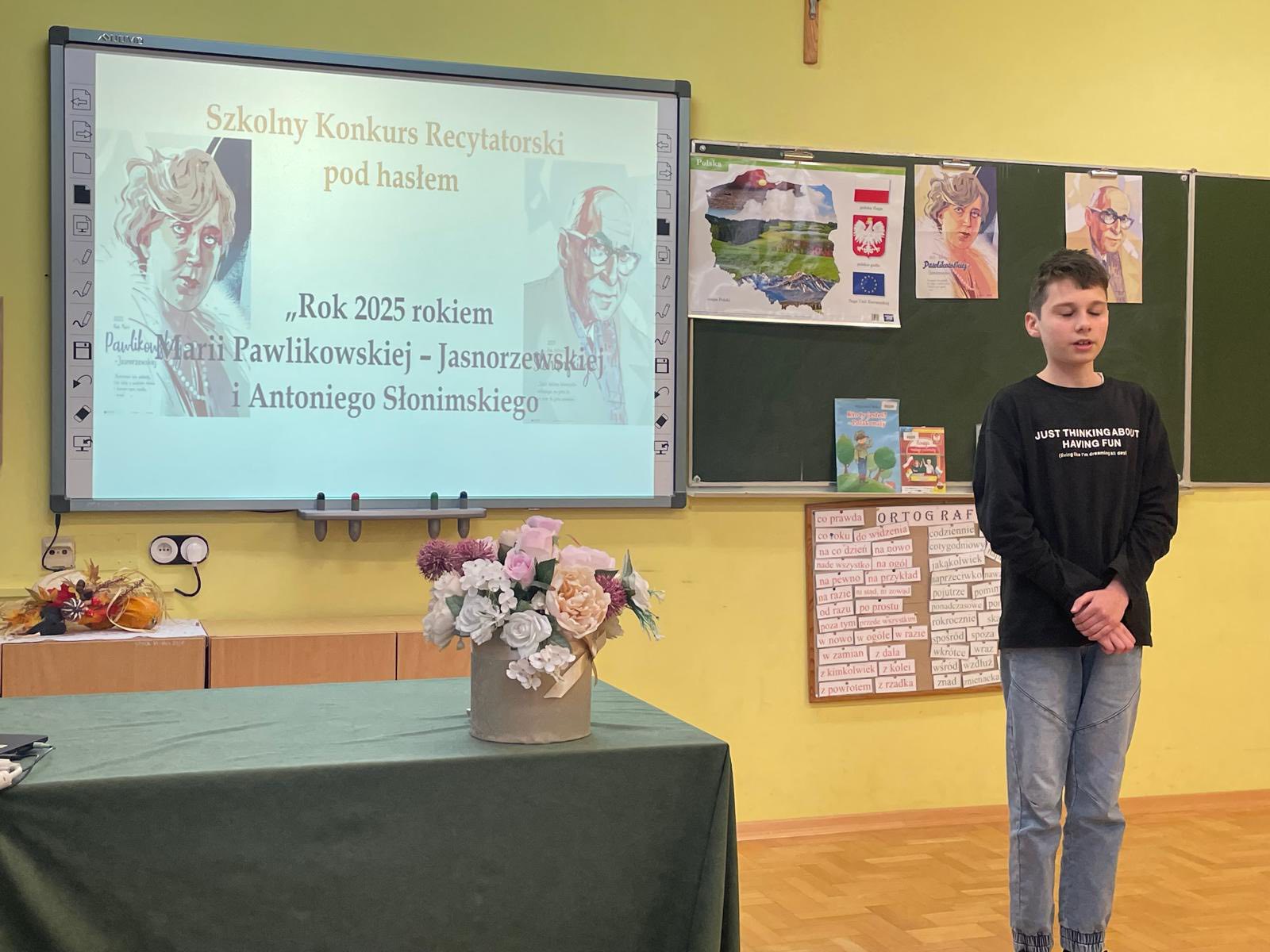 W dniu 27 listopada 2025 odbył się Szkolny Konkurs Recytatorski dla klas 4-8 pod hasłem "Rok 2025 rokiem Marii Pawlikowskiej-Jasnorzewskiej i Antoniego Słonimskiego."