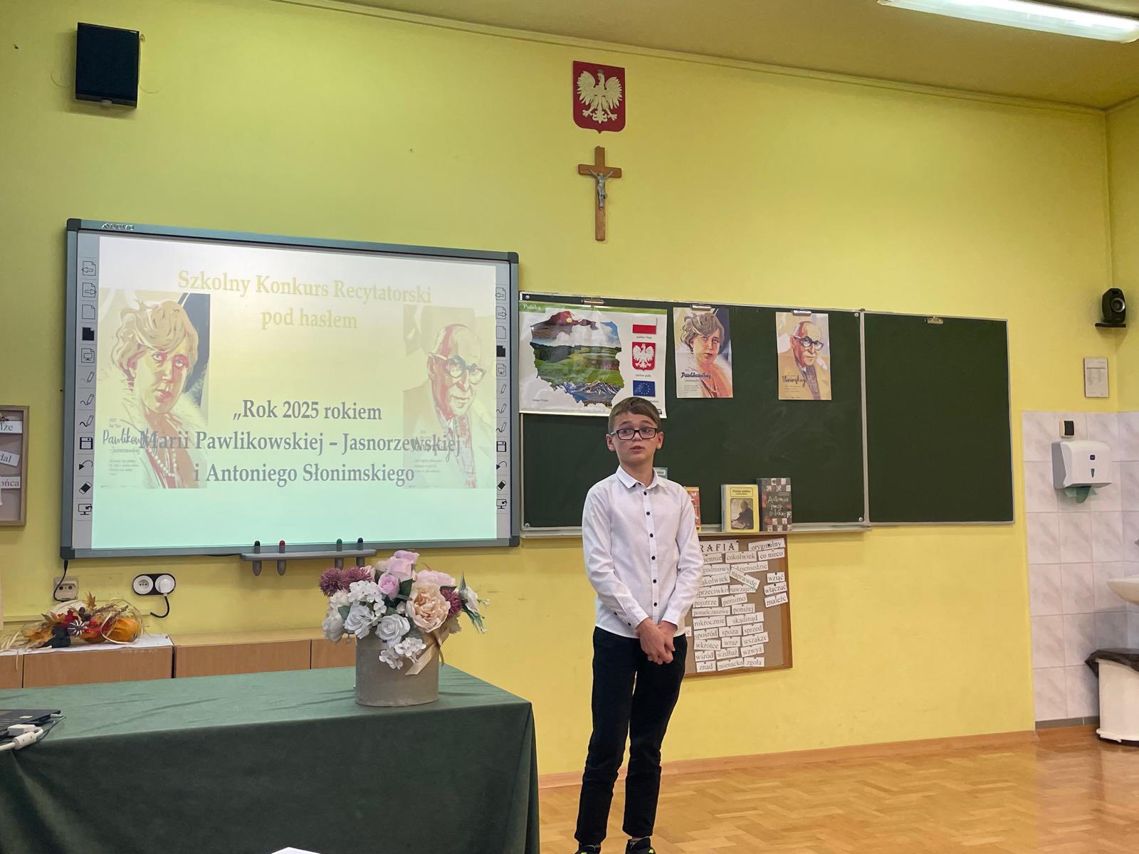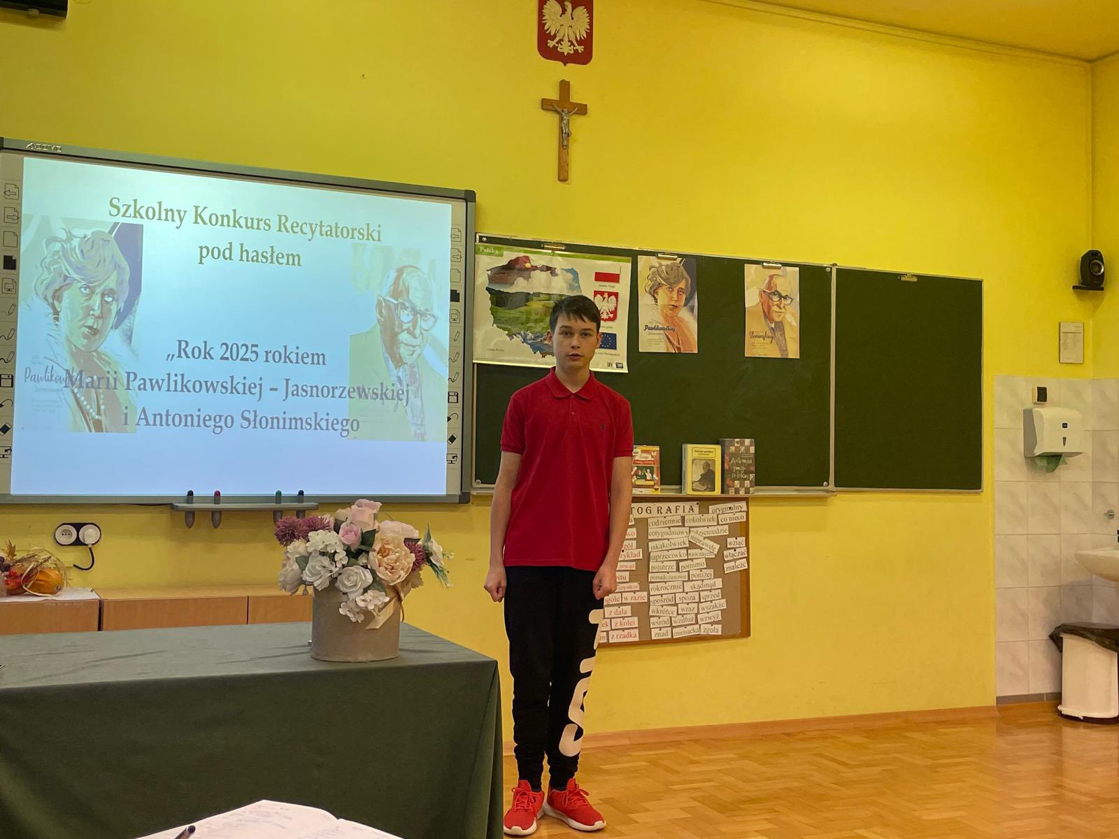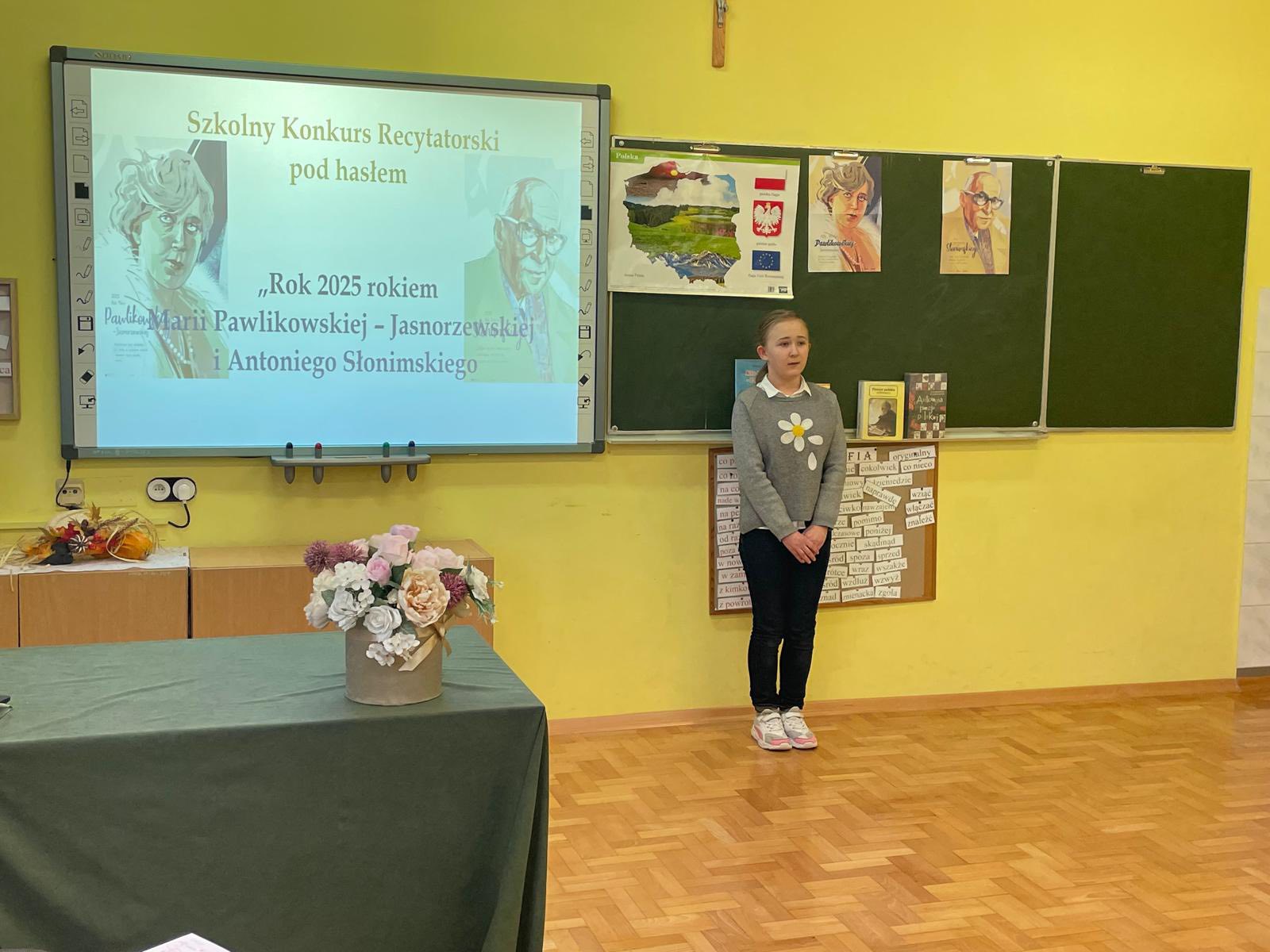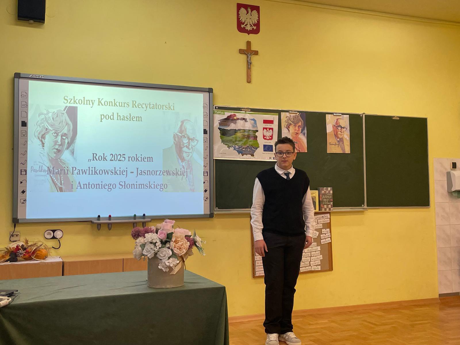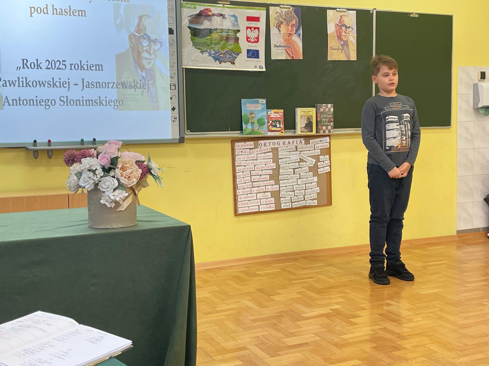W dniu 27 listopada 2025 odbył się Szkolny Konkurs Recytatorski dla klas 4-8 pod hasłem "Rok 2025 rokiem Marii Pawlikowskiej-Jasnorzewskiej i Antoniego Słonimskiego."