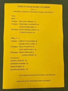 Wyniki Szkolnego Konkursu Recytatorskiego...